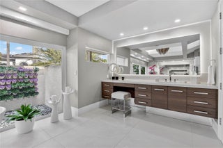 St. Andrews, a prestigious community, presents this award-winning designer-curated residence. The house underwent a complete renovation in 2019 and boasts expansive water views, four true en-suite bedrooms, five and a half bathrooms, a media room with a full bath -ideal for guests and a private office. The state-of-the-art kitchen features Sub-Zero refrigeration, full Miele appliance package, custom cabinetry, and premium finishes. All closets are custom-built and walk-in. The estate also includes a heated pool with jacuzzi and fire pit, along with extensive upgrades such as a whole-house generator, solar panels, impact glass, Nest A/C, a Sonos sound system throughout the interior and exterior, a central vacuum system, a 1,000-gallon gas tank, exterior cameras, mosquito repellent system, automatic screens, and retractable awnings. Seamless indoor-outdoor living is achieved through beautifully designed entertaining areas overlooking tranquil water views. Additional features include elegant architectural detailing, high-end lighting and hardware, professionally landscaped grounds, and thoughtfully designed spaces for both daily living and entertaining. St. Andrews offers championship golf, tennis, pickleball, resort-style pools, fitness center, spa, and multiple dining venues. A move-in-ready estate combining luxury, technology, and designer finishes in one of Boca Raton’s most sought-after communities, ideal for buyers seeking privacy, security, and an exceptional lifestyle.