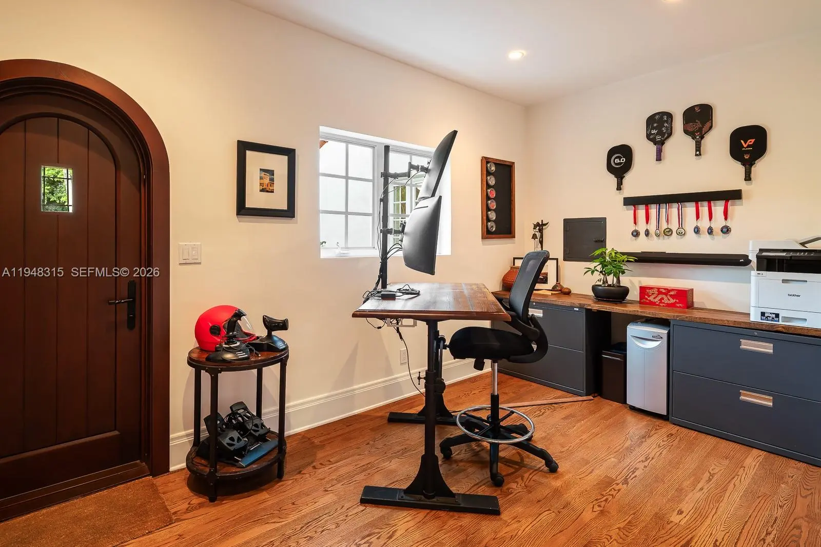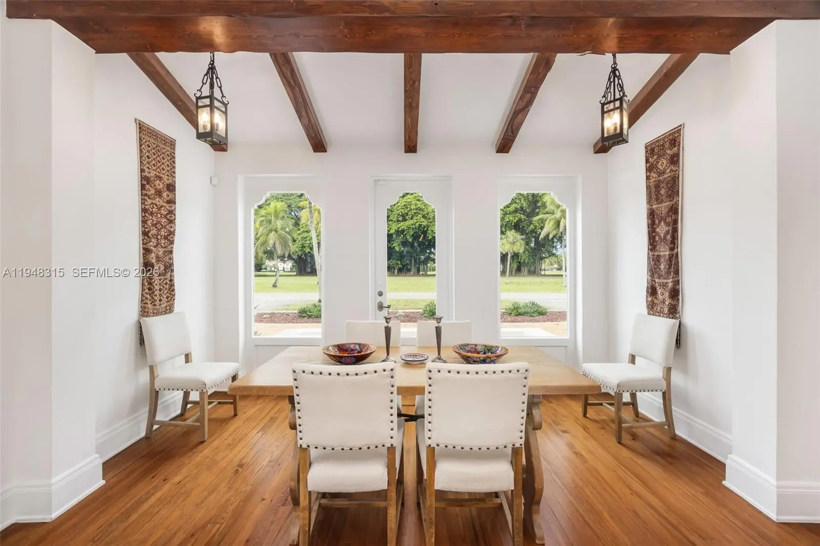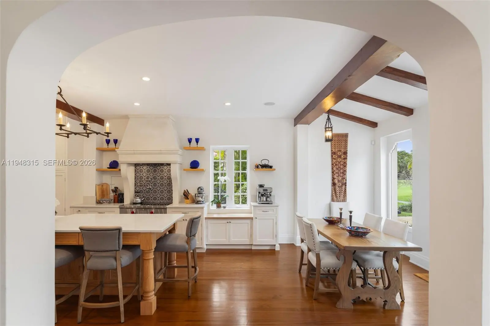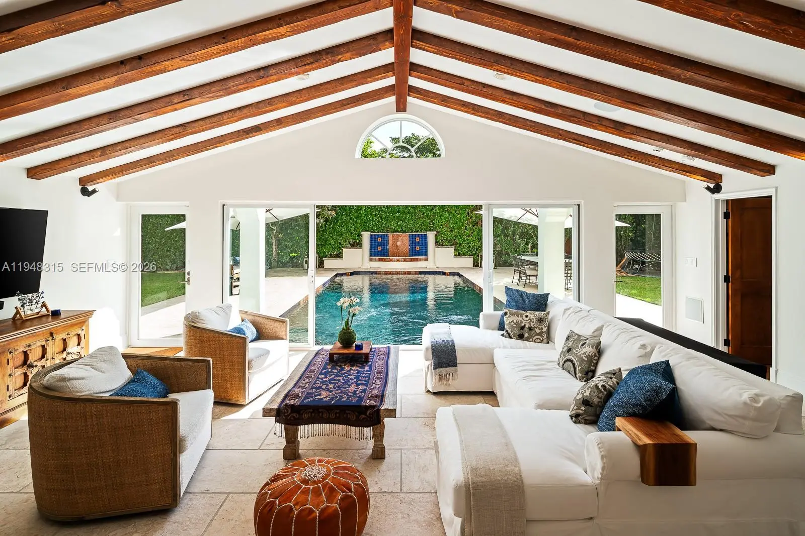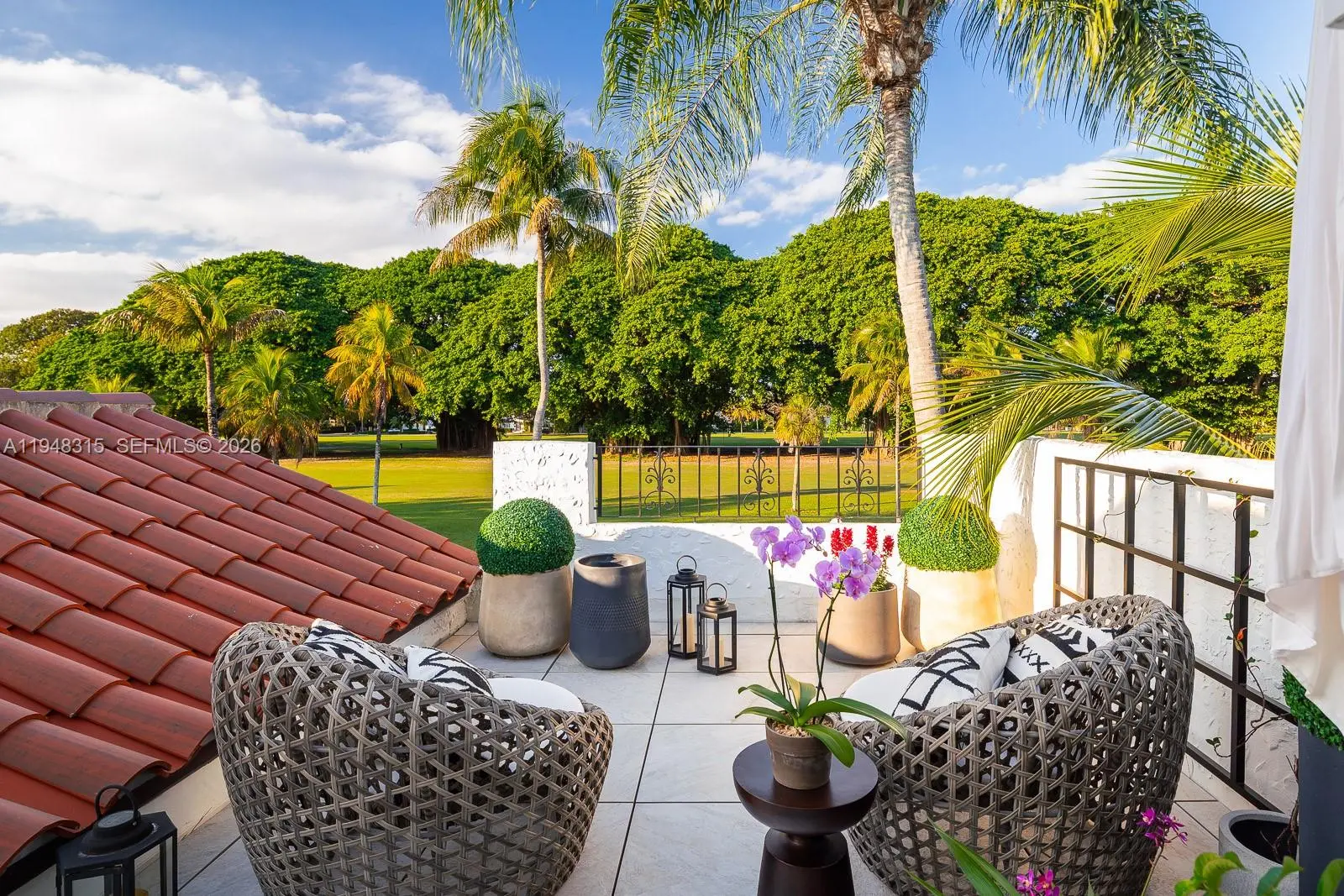 Designer-owned and completely renovated historic residence overlooking the Granada Golf Course, with awe-inspiring views of landmark banyan trees on the 6th fairway. This 4BR/3.5BA Old Spanish home seamlessly blends modern open living with preserved architectural charm, offering a rare combination of character, comfort, and move-in-ready convenience. A sun-filled, open-flow layout centers around a chef-worthy kitchen with custom Vermont-made cabinetry, Sub-Zero, Wolf & Kohler fixtures. Expansive family room opens directly to a resort-style pool & patio, ideal for indoor-outdoor entertaining. All 3 main bedrooms feature large walk-in closets. Upstairs primary suite enjoys tranquil golf course views & a charming sun porch. 4th bedroom is perfect for live-in help or in-laws. Design details include meticulously restored vintage doors, imported custom iron chandeliers, and a rare 1923 solid cast-iron soaking tub. Additional highlights include a home office with separate entrance, fully finished and air-conditioned garage currently used as a gym, commercial-grade IT with Cat 6 wiring throughout, AV, CCTV, storm windows, solid concrete block construction, and Trane central AC systems. Located outside a flood plain and adjacent to the Granada Golf Course, engineered to provide natural water absorption. A truly special Coral Gables offering—historic, refined, and turnkey—just minutes to the Biltmore Hotel, Country Club, parks, Miracle-Mile dining, and Miami International Airport.
