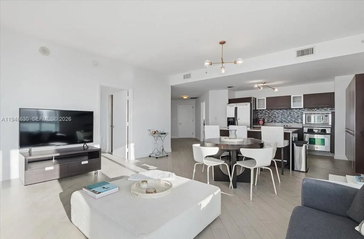 This condo, this community, it's exactly what you've been dreaming of. Welcome Home to Quantum on the Bay #1518, a spacious corner 2-bedroom, 2.5-bath condo in the heart of Edgewater Miami. This layout delivers the privacy you want: ensuite bathrooms & walk-in closets in each room, plus a guest bathroom and dedicated laundry closet tucked away to keep the living spaces quiet & uncluttered. Natural light fills the home throughout the day, and evenings bring gorgeous sunset skies and a calm, elevated feel. Entertain or unwind on the nearly 300 sq ft terrace and create your own private sanctuary above the city. Pet lovers will love the lifestyle, with Margaret Pace Park just across the street featuring open green space, a dedicated dog area, shaded paths, and the bayfront promenade. Nearby paddleboard and kayak rentals make it easy to enjoy Biscayne Bay and the waterfront scenery. Quantum offers a “close to everything” lifestyle without the constant noise of the Miami hustle. Enjoy quick access to Midtown, the Design District, Wynwood, Downtown, Miami Beach, I-95, Miami International Airport, and top cultural destinations including the Adrienne Arsht Center, Pérez Art Museum Miami (PAMM), Frost Science Museum, and more. Quantum on the Bay is a full-service, amenity-rich building featuring 24/7 concierge and security, valet, two pools, a two-story fitness center, sauna, club/lounge spaces, and a theater room, plus convenient ground-level retails and foodie spots nearby.