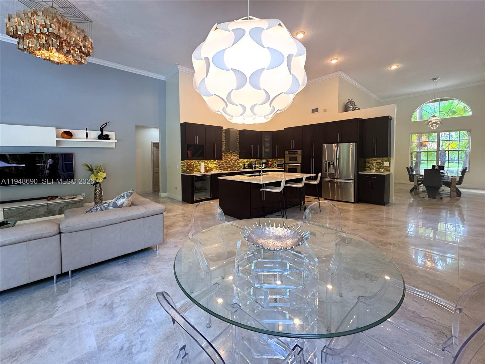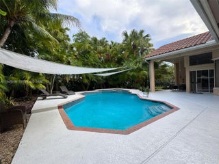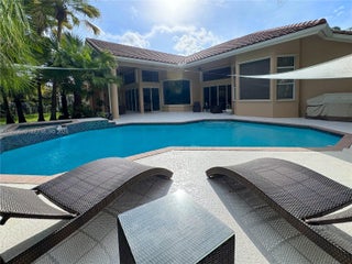 Step into this stunning Weston Gem where elegance meets modern comfort. This remodeled home features a 'Pavilion Style-Open-Concept-Layout', High Ceilings, porcelain floors, and marble & bamboo in the bed/bath. The renewed Cambria Kitchen invites effortless entertaining. Freshly painted throughout in 2025. The gigantic patio extends the LA. Enjoy a resort-style backyard with a fully renovated private pool and spa, new tile, Diamond Brite, and refinished decking/cabana bath/2025. Includes updated garage floor and driveway pavers. Located in one of Weston’s exclusive Palm Island Community, with dual private entrances—Indian Trace & Royal Palm—for access without school traffic. A lifestyle upgraded where details reflect refined taste and exclusiveness. Best schools A+