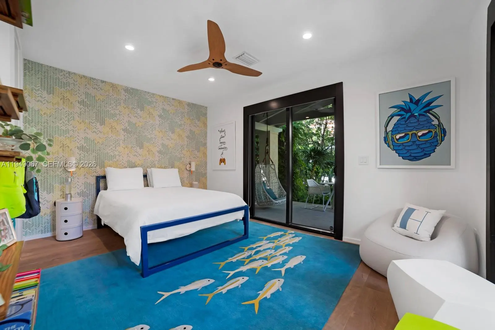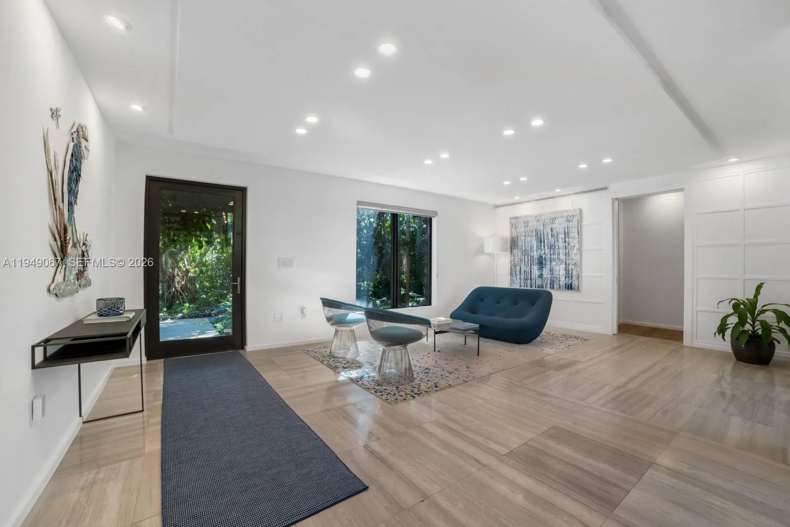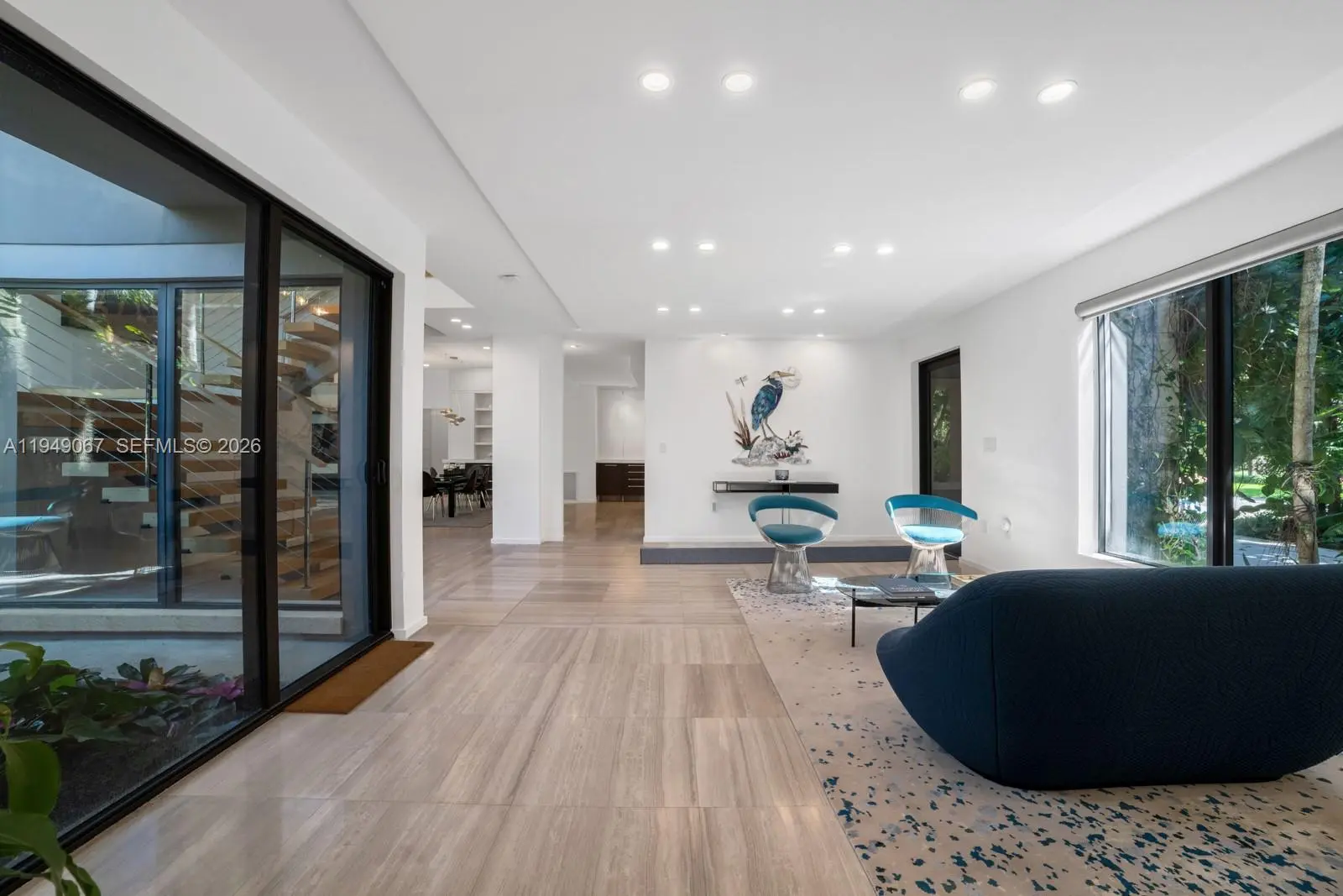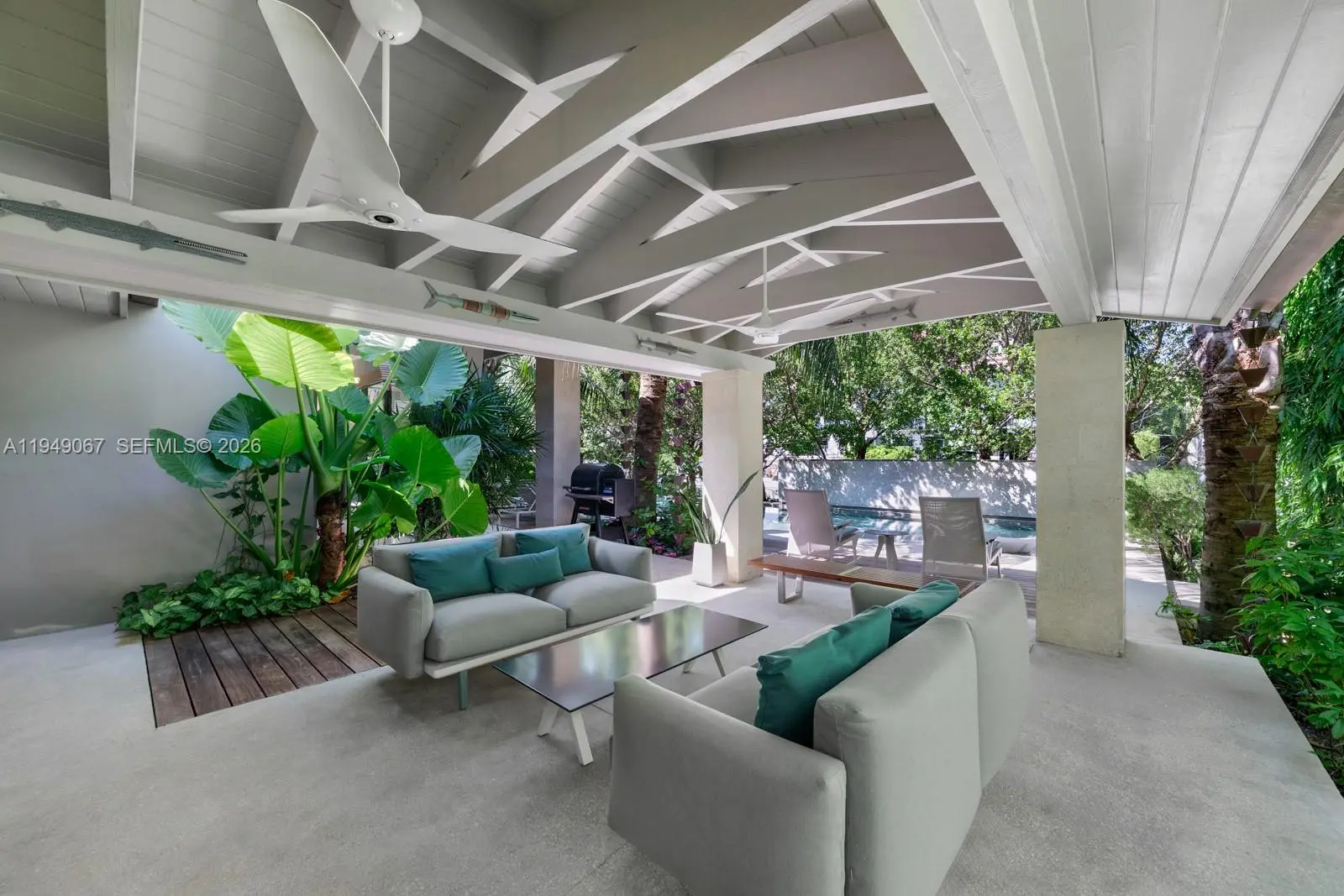 Located within guard-gated Sunrise Harbour, this exceptional waterfront residence offers 100 feet of seawall and a 60-foot dock, delivering direct, no-bridge access to Biscayne Bay for effortless cruising and quick ocean access. Designed with the boating lifestyle in mind, the property features upgraded dockage complete with pedestal and boat lift, providing ideal accommodations for day boats and watercraft. The grounds are a true work of art, showcasing custom landscape architecture by renowned Raymond Jungles, where sculptural tropical plantings create a private, serene oasis and frame each outdoor space with intention and beauty, while the pool and hot tub are seamlessly integrated into the landscape. The home offers 4 bedrooms plus a playroom, which can be converted to a fifth bedroom, and 4.5 bathrooms, all thoughtfully designed for effortless indoor-outdoor living. A prime opportunity to own a meticulously resort-style waterfront estate in a premier gated community of Coral Gables.