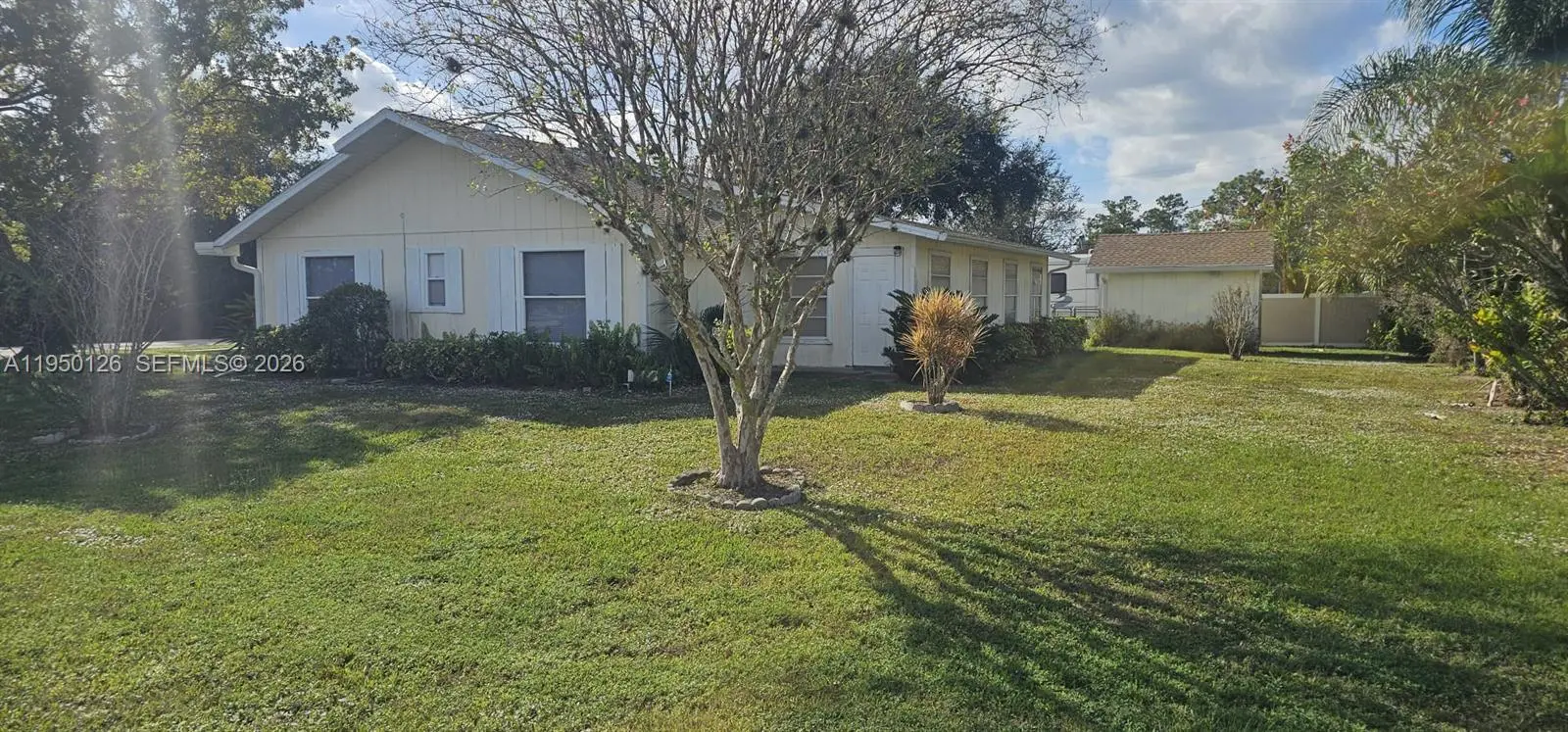 Spacious 3 bedroom 2 Bath home on a corner Lot. Situated in a highly desirable location of Lehigh Acres Florida. This home is well maintained by one owner and ready to move in. New roof in 2022 and the backyard is partially fenced which has storage shed that can be used for your personal workshop. No HOA fees or restrictions. Bring your Boats, RV's and recreational toys. Close to all conveniences, recreation, International Airport and restaurants. Bring all offers.