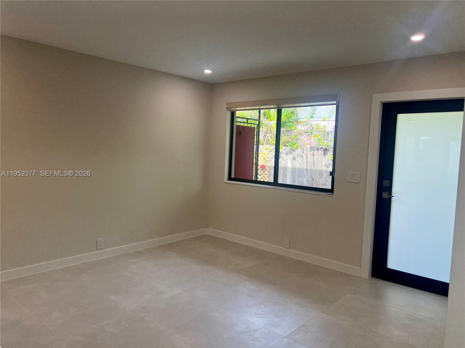 Gorgeous modern and completely remodeled 2 bed 1 bath unit with fenced yard in Coconut Grove! The brand new unit features hurricane impact windows and doors, assigned parking. Brand new everything! Freshly painted! Gives the feel of a brand new constructed home! Porcelain tile flooring throughout. Custom cabinetry with quartz counter tops in your eat in kitchen, new stainless steel appliances. Brand new bathroom tile, glass enclosed shower, vanity with new faucet, new toilet. Bedrooms are a good size , they both have sliding mirror closet doors and fans. New full size washer and dryer inside your unit. Come outside to your gated and covered and tiled patio with outside cabinetry and sink. Huge covered patio area where you Hang up your TV and have a great BBQ party with lush landscaping! Parking is right next to your unit plus street parking. Why rent an apartment when this feels like a home! Walk to the downtown of the grove where all the restaurants and night life is. All new landscaping. Gated back yard. Park right next to your unit or in front of the building , plenty of parking for guests visiting.