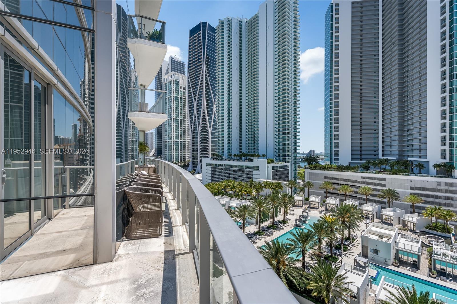 A redesigned 2-bedroom + enclosed den with the option to convert into a 3-bedroom, located in the heart of Miami Worldcenter. Unit #1409 features custom doors, flooring, door handles, window treatments, millwork, upgraded lighting, wallpaper, built-in storage, and a premium audio system. Enter through a private lobby with secure keycode access, custom finishes, and built-in cabinetry to maximize storage. The residence opens through a foyer hallway which leads you to the bright living areas with water and skyline views. The expansive outdoor terrace, located above the amenity deck, includes a TV and lounge space to enjoy the bay and city skyline views. The residence is fully-furnished and located in the building with the most amenities in the world. Ready for immediate occupancy.