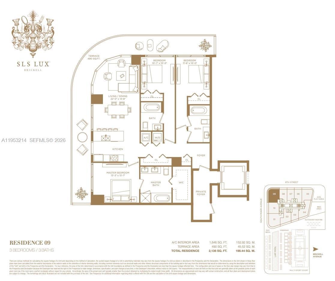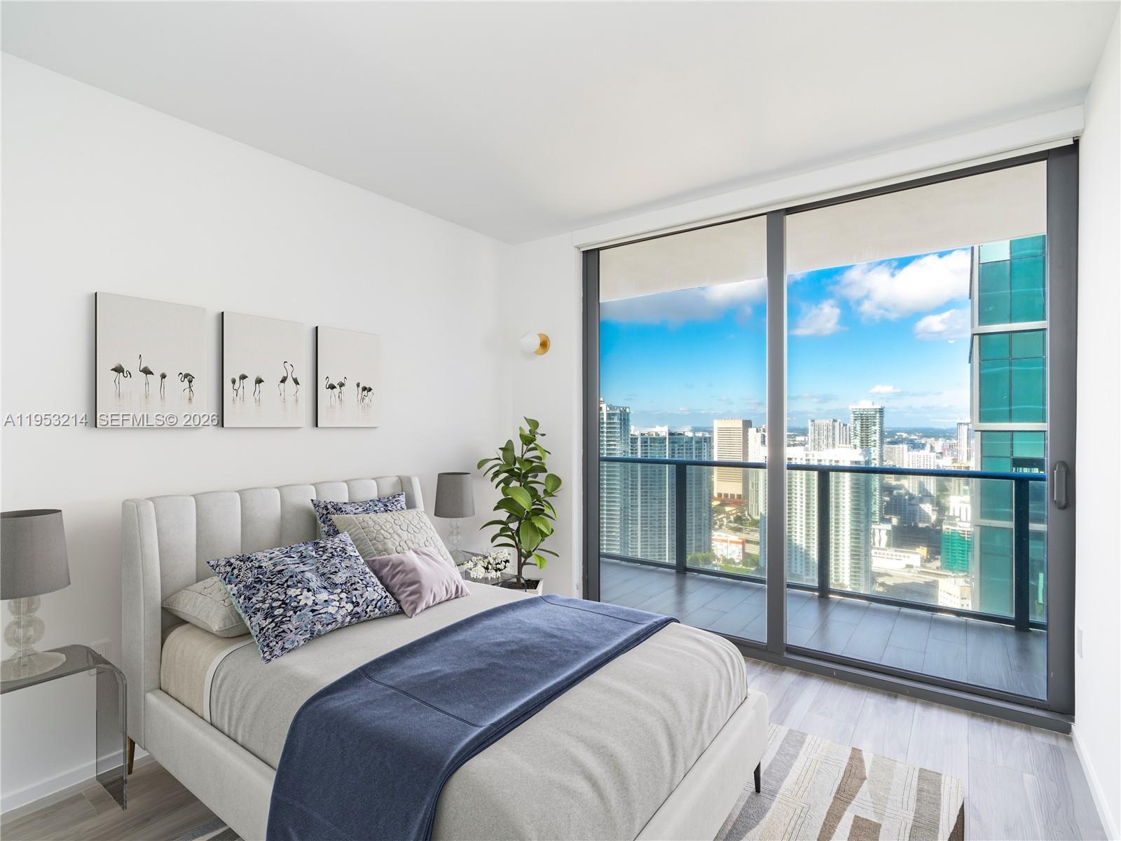 Immerse yourself in living the epitome of Miami lifestyle. This incredible unfurnished 3 bed / 3 bath corner unit is located in the heart of the city. A private foyer welcomes you as soon as you step off the elevator into a unit with a huge wrap around balcony & breathtaking views from the 47th floor. All 3 bedrooms have ensuite bathrooms. The SLS includes 5 star amenities; world class fitness room, 9th Floor pool with a bar & towel service, a resident only roof top pool, tennis court, basketball court, kids’ playroom, resident lounge, Spa, jacuzzi, valet parking, and much more. The rent includes 1 assigned parking space, cable, internet, & water. Walking distance to everything you need.