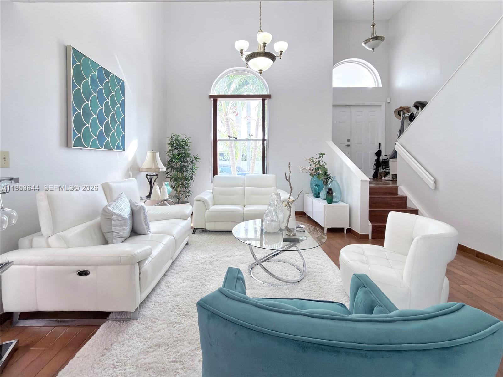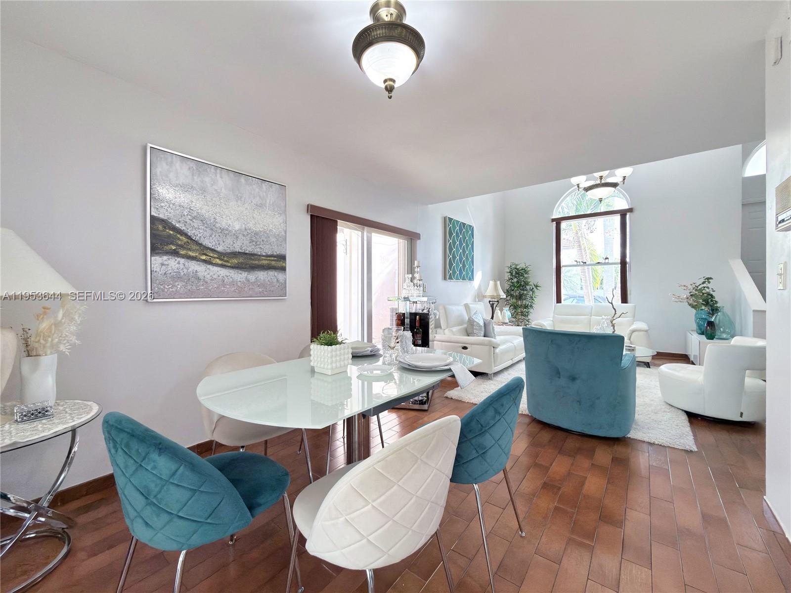 Stunning 4-bedroom, 3-bathroom residence featuring a convenient first-floor bedroom with a full bathroom—ideal for in-law quarters or potential efficiency for additional income. The home boasts soaring ceilings and abundant natural light throughout. Recent upgrades include a newer roof (2019) and A/C (2014). Equipped with full impact windows, an impact garage door, and additional electric shutters for enhanced safety. The kitchen showcases beautiful granite countertops. This home includes a spacious 2-car garage and a generous backyard with low-maintenance synthetic grass, a metal fence, and a side awning, perfect for outdoor living and entertaining. Located in a No-Flood zone within a quiet residential neighborhood. Enjoy serene Lakeview and access to the community pool and fully equipped gym. The community offers a very low and stable HOA, with no increases in over 10 years. Close to excellent schools, parks, and just minutes from the Turnpike, Dolphin Mall, and other major shopping and dining destinations.