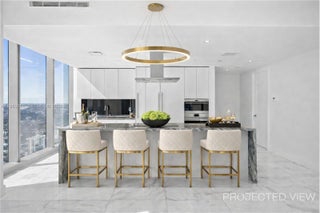 This spectacular residence offers the epitome of modern living with 4 spacious bedrooms, a family room, and 6 elegant baths, all adorned with impeccable finishes. Revel in unobstructed water views and a breathtaking city skyline from your floor-to-ceiling windows. Convenience is key, with a separate laundry room and extra storage ensuring ample space for all your needs. Don't miss the chance to call this stunning property home – where impeccable design meets unparalleled vistas at Missoni Baia. Parking spaces unit is 522 & 523.