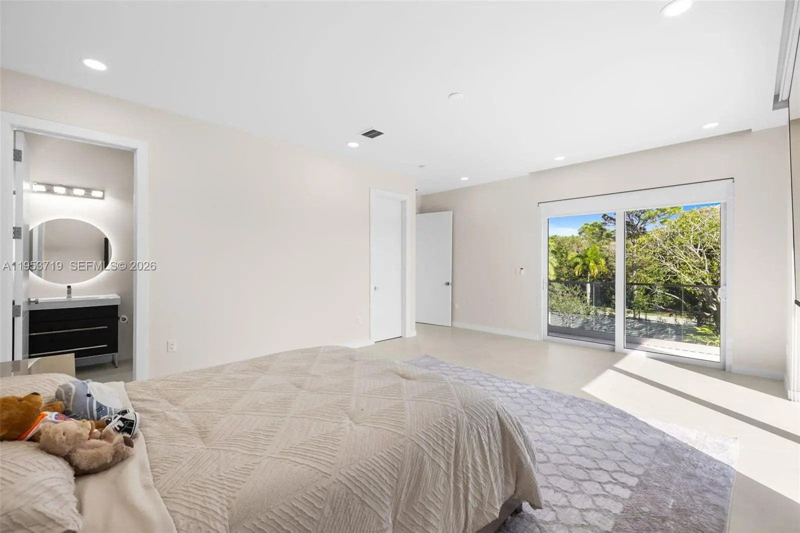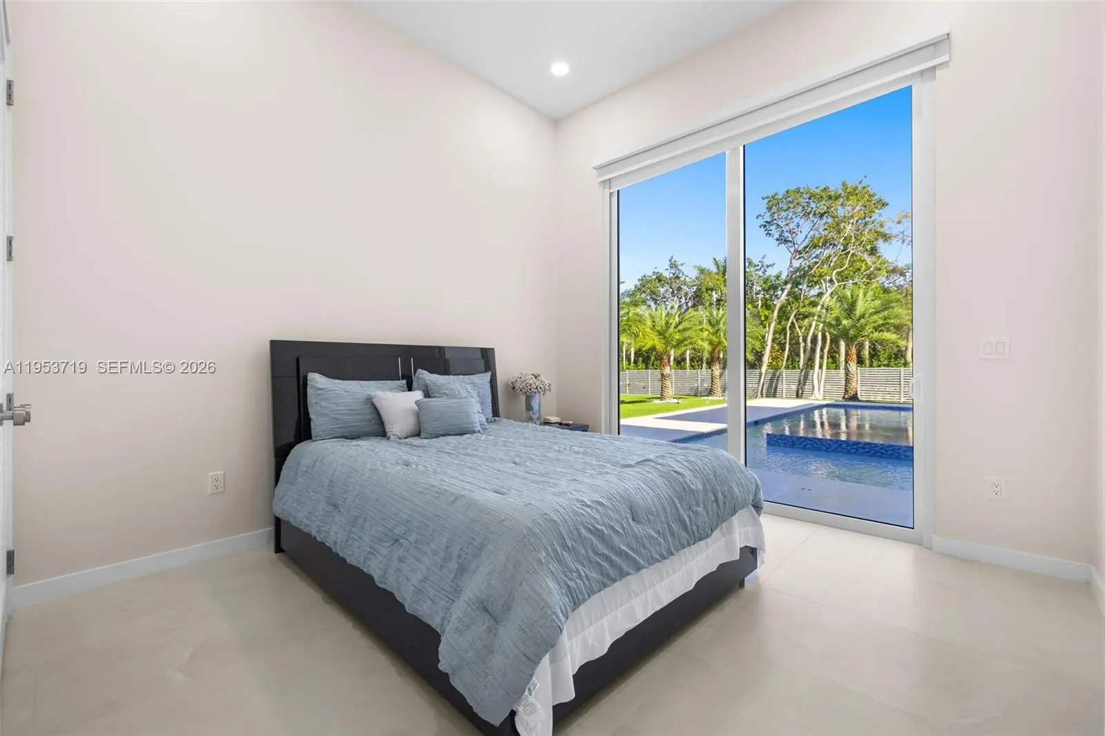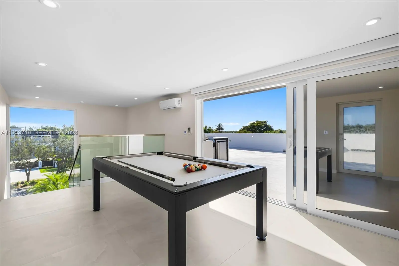 A recently completed modern residence offering refined scale, architectural clarity, and thoughtful design throughout. This home features five en-suite bedrooms plus a powder room, with soaring two-story ceilings anchoring the kitchen, entry, and primary entertaining spaces to create an immediate sense of volume and light. Walls of expansive impact glass frame the outdoors and flood the interiors with natural light, while the open, well-proportioned floor plan is designed for seamless living and entertaining. The kitchen and main living areas flow effortlessly to the exterior, where a glistening pool, lush grassy yard, and private sports court create a true indoor-outdoor lifestyle. The outdoor spaces are thoughtfully layered, featuring a poolside entertaining area with a covered summer kitchen. A rooftop sundeck, complete with a secondary grill, offers generous space to tailor the setting for open-air dining, lounging, and entertaining under the stars. A detached cabana/guest suite offers flexibility for guests, work, or recreation. The property is moments from the bay, with coastal breezes and a tranquil setting that enhances everyday living. Located in one of the most desirable neighborhoods of Palmetto Bay, this is a turnkey modern home defined by scale, light, and quality, ideal for those seeking a refined yet relaxed South Florida lifestyle.