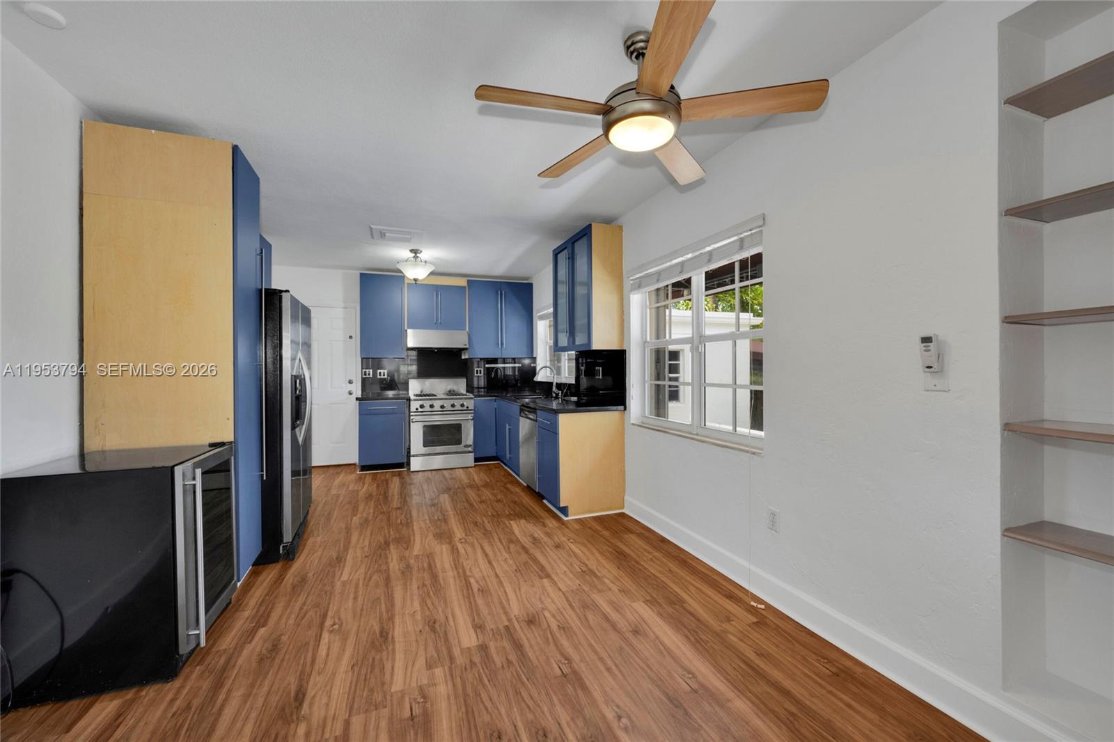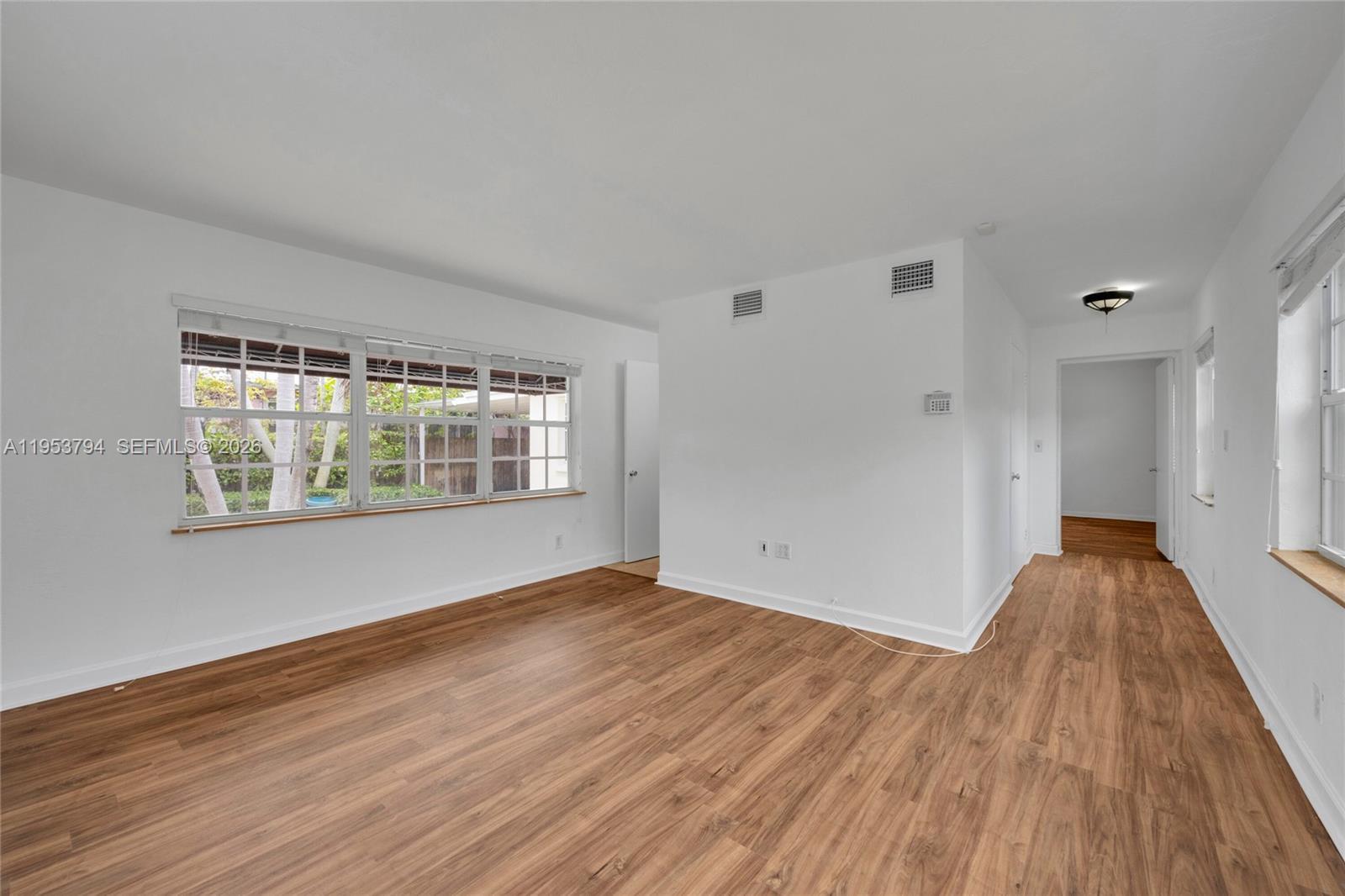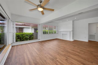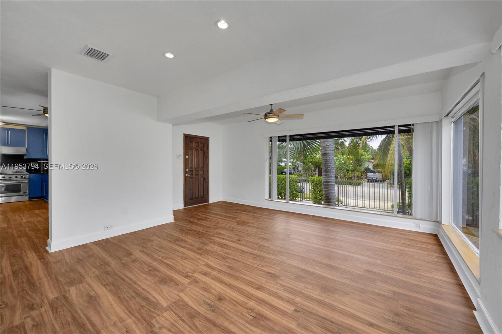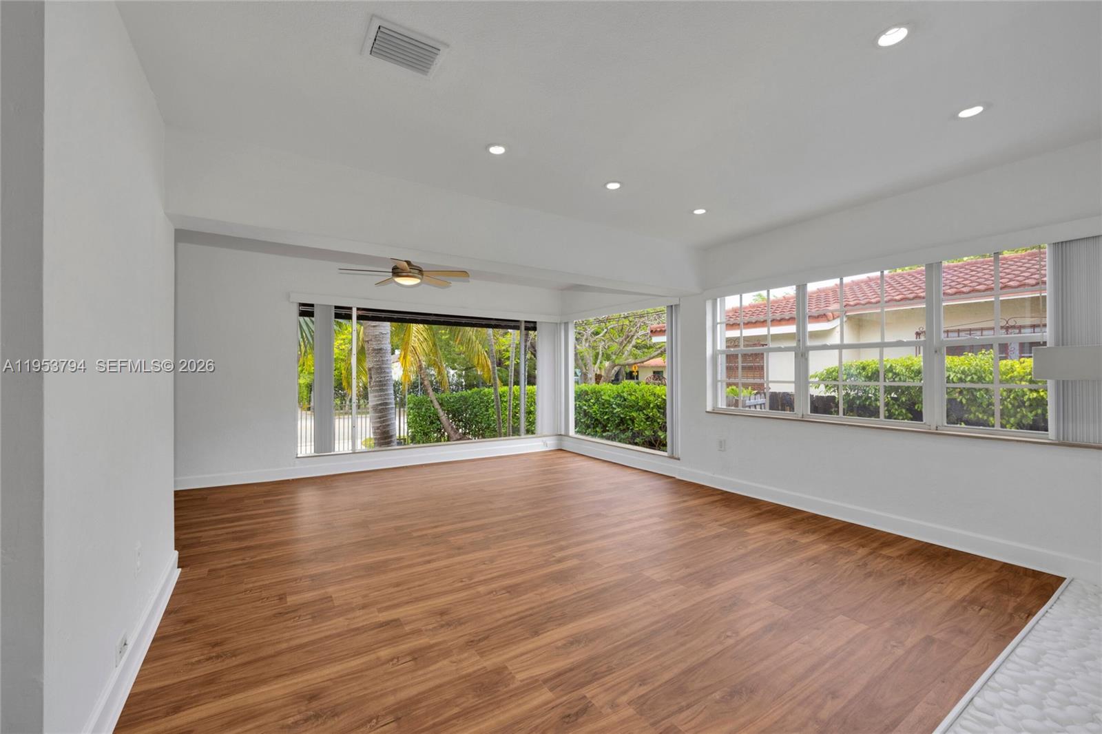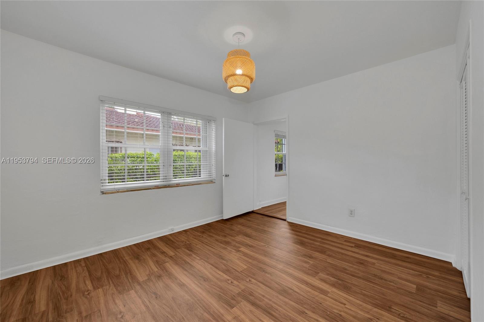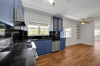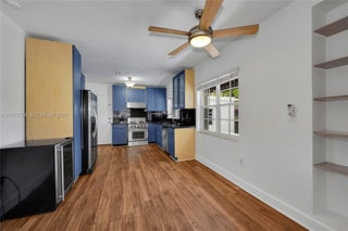 Silver Bluff pool home with timeless mid-century modern charm. This three-bedroom, two-bath residence is set on a quiet, tree-lined street and filled with natural light throughout. The kitchen features a spacious dining area, gas cooktop, wine cooler, and ample storage, perfect for everyday living and entertaining. Separate laundry area for added convenience. The primary suite is uniquely situated and accessed through the third bedroom, offering flexibility for use as a home office, nursery, or sitting room. Travertine bathrooms with two walk-in showers (no tub). Enjoy a private, fenced backyard with a saline pool featuring beach entry—ideal for relaxing or entertaining. Parking includes a one-car garage, one-car carport, and circular driveway. Prime location just minutes from Coconut Grove, Coral Gables, Brickell, Downtown Miami, Key Biscayne, and major expressways. Rent includes lawn and pool maintenance. Tenant responsible for water/sewer, electricity, gas, and internet/cable.