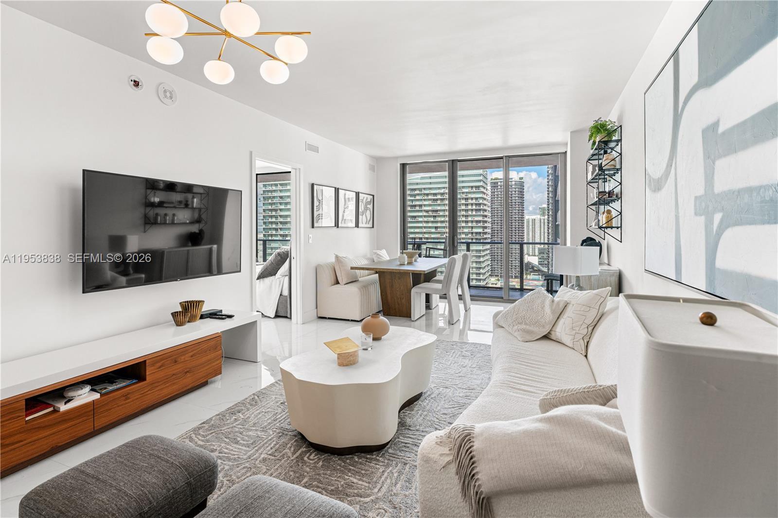 Experience elevated living at Dua Residences in this expansive 2-bedroom plus den, 2-bath corner residence offering one of the largest floor plans at 1,155 SF. A wraparound terrace showcases sweeping city and bay views, filling the home with natural light. Interiors feature porcelain tile, custom closets, roller shades with blackout, and a sleek open-concept kitchen with quartz countertops, premium Bosch appliances, and contemporary grey cabinetry. Residents enjoy access to hotel-level amenities including a rooftop pool, state-of-the-art fitness center, spa, kids’ playroom, and two acclaimed on-site restaurants, complemented by exclusive Dua Hotel services. One assigned parking space included on P7. Ideally located just steps from Brickell City Centre, fine dining, and nightlife.