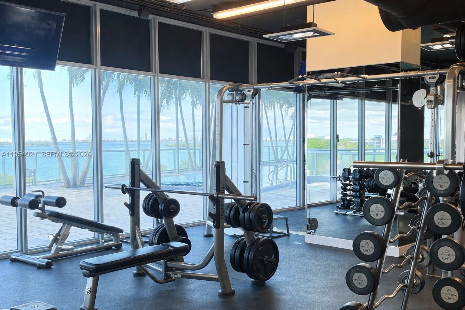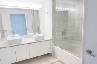 Spacious 1,870 sq ft corner residence in one of the most desirable lines in the building, offering unobstructed water views from every window and showcasing the bay and Miami Beach with excellent natural light and privacy. The floor plan features two generous bedrooms with en-suite baths, a third full bathroom, and an oversized living and dining area with excellent flow for everyday living and entertaining. Floor-to-ceiling windows wrap the residence, maximizing water views throughout, and are equipped with motorized shades and drapes controlled by remote. The unit includes two assigned garage parking spaces, one valet parking space, and one assigned storage unit. Full-service building amenities include multiple pools, fitness center, spa, media and party rooms, business center, dog park, valet service for residents and visitors, and 24-hour security. Ideally located near the Design District, Midtown, Edgewater, Downtown, and Miami Beach. Photos are of the actual unit. Furniture has been digitally removed to better illustrate the space and layout.