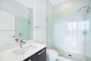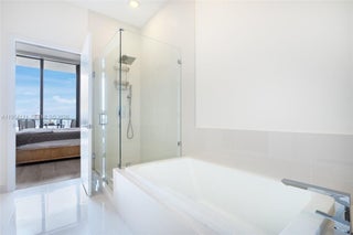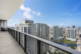 Opulent and expansive lower Penthouse at Brickell Heights East Tower. 3 bed 3.5 bath 2,000+/- sq ft total space with 12'+ volume ceilings. 3 full en-suite bedrooms all with room darkening shades and custom closet cabinetry plus a 4th guest bath and separate den/office area. Primary suite bath with dual sinks, separate tub and shower plus massive triple sized walk-in closet. Sub Zero, Bosch upgraded kitchen appliances. Extra capacity non-stacked washer and dryer in separate walk in utility room with even more storage. Stunning wide open north, east and west views from an expansive balcony in the heart of everything Brickell - Easy to Show -