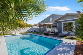 This modern home was completely remodeled in 2020. Updates include new tile flooring throughout, a fully upgraded plumbing system, a new electrical panel with updated interior and exterior wiring, dimmable LED lighting, and four new 12,000 BTU split A/C units for year-round comfort. The kitchen was also updated in 2020 with all-new appliances, cabinetry, and countertops, and it opens directly to the backyard, creating a seamless flow for indoor-outdoor living. Step outside to a beautifully designed pool and outdoor space ideal for entertaining, relaxing, or everyday enjoyment. The primary suite offers direct access to the pool, enhancing the home’s private, resort-style feel. The home includes two full bathrooms with spacious showers and bidets, plus a convenient half bath for guests. The second bedroom features its own private entrance, offering flexibility for rental income, guests, or a home office. A new metal roof installed in 2025 completes the property, providing long-term durability and peace of mind.
