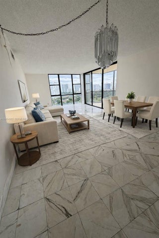 Gorgeously 2-bedroom 2-bathroom apartment, kitchen with stainless steel appliances and a spacious first bedroom features with a walk-in closet, split floor plan, excellent panoramic view of the Golf Course, pool and lake. Unit located in the heart of Aventura, ten-minute walk to Aventura Mall, House of worship and restaurants, Excellent A rated school district. 30 minutes to two international airports, Fort Lauderdale and Miami. South Beach/Wynwood nightlife. Ten minutes to pristine beaches. Rentals permitted after one year. Lobby and hallways were completely renovated. Building has the 40-year certification.