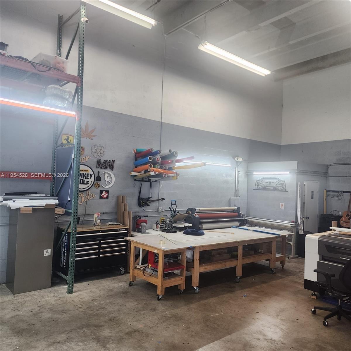 Functional Warehouse with Office Space in Prime Industrial Location! Total space of +/- 1,027 SF featuring approximately +/- 727 SF of open warehouse area and +/- 300 SF of office space. Property offers 17’ clear ceiling height, one (1) street-level loading door, two (2) assigned parking spaces, and additional parking in front of the overhead door. Excellent access to major highways including Palmetto Expressway (SR-826), Miami International Airport, Doral, and PortMiami — ideal for logistics, storage, distribution, or light industrial use. *****UNIT AVAILABLE UNTIL FEBRUARY 16, 2026. *****