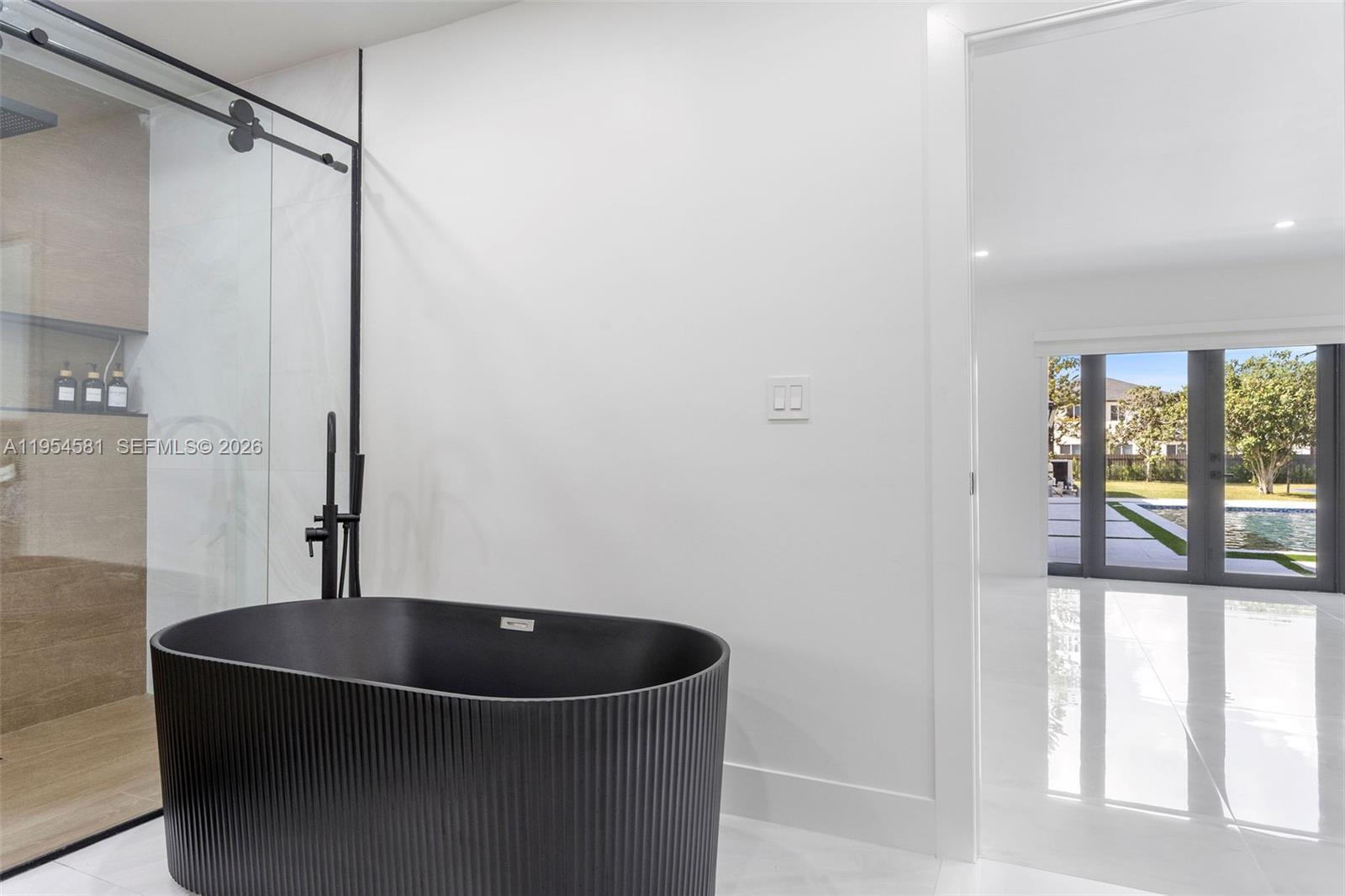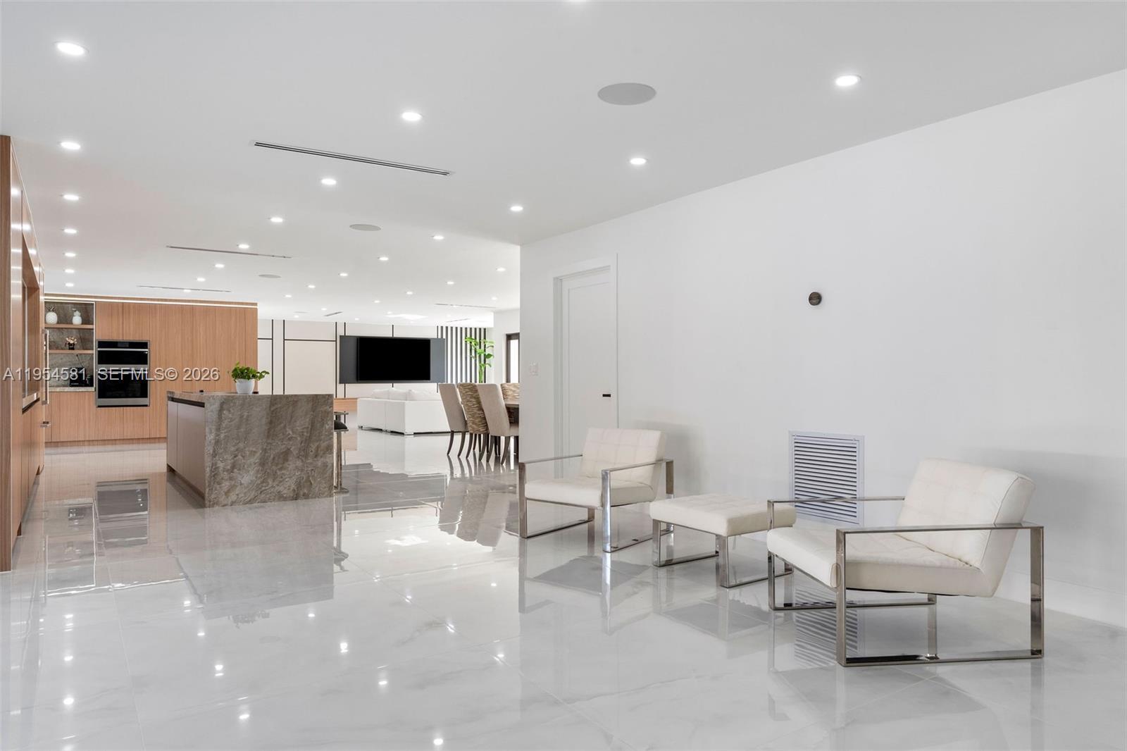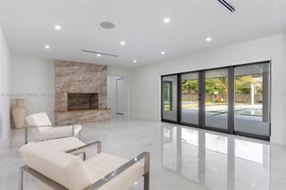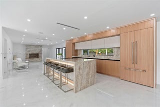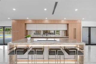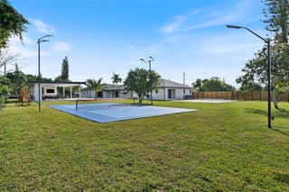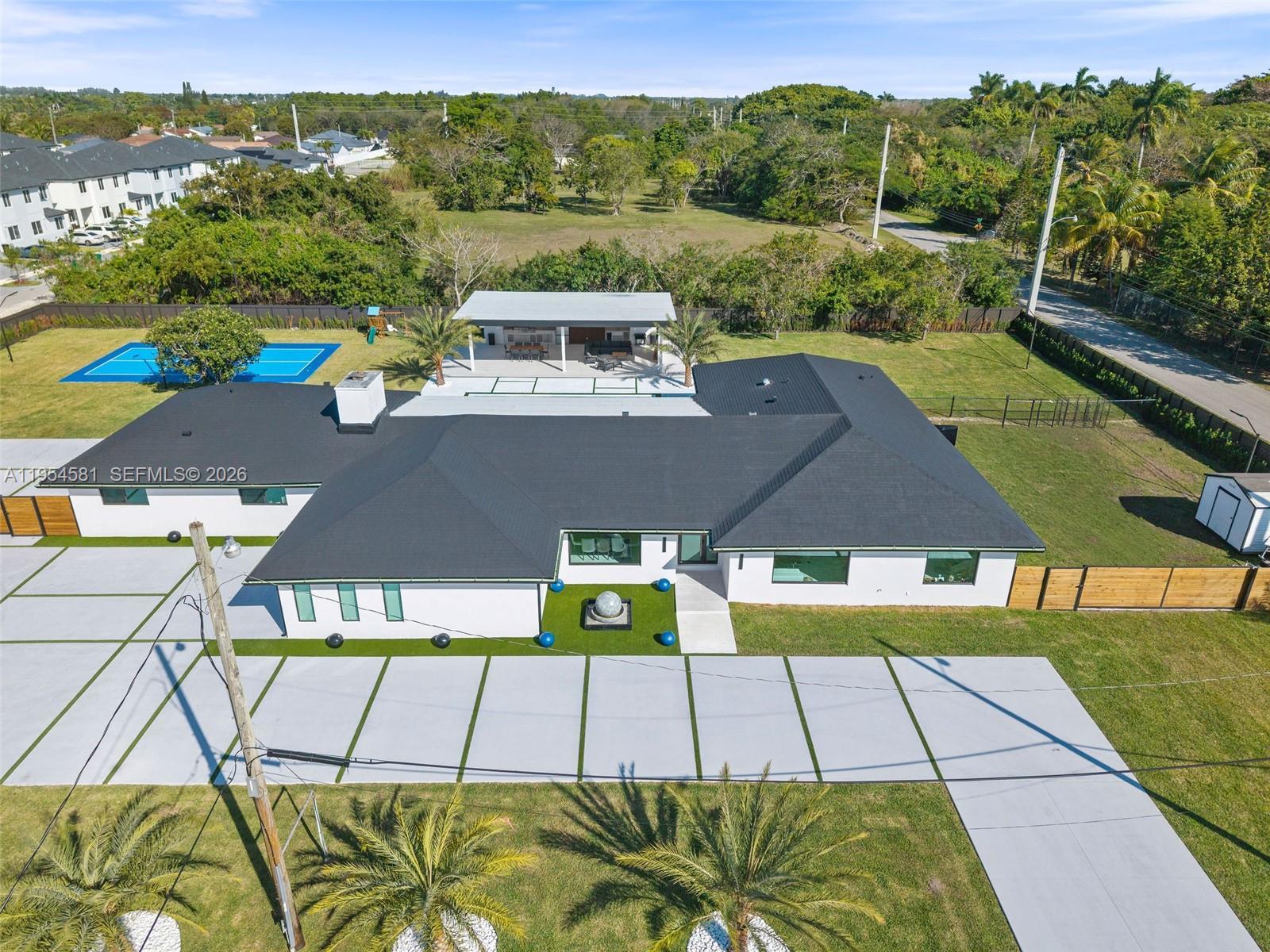 Welcome to an extraordinary residence where contemporary design meets unparalleled outdoor living — a sanctuary reimagined from top to bottom on an expansive corner lot. Fully remodeled with no detail spared, this home offers a rare blend of refined interiors and unmatched outdoor living, setting a new benchmark for luxury in the area. The home makes an immediate impression with all-new Low-E impact windows and doors, enhancing both aesthetics and energy efficiency while flooding the interior with natural light. Inside, expansive living areas are unified by 48×48 Spanish porcelain tile, creating a clean, contemporary canvas throughout. The heart of the home is a designer kitchen and living space finished with Taj Mahal quartzite countertops, offering timeless elegance, durability, and visual warmth. Every space has been thoughtfully reimagined to maximize flow, comfort, and functionality. Designed for elevated entertaining and everyday enjoyment, the property opens to a private outdoor oasis that includes a heated smart pool and jacuzzi with app-controlled functionality, a custom pickleball court with professional lighting, and an exterior cabana equipped with a Summerset BBQ and premium appliances delivering a true resort-style experience at home. Manicured landscaping is supported by a sprinkler system. Additional features include a 2-car garage, integrated whole-home audio system, and a modern camera security system.