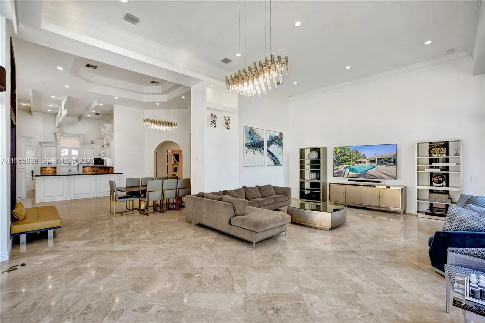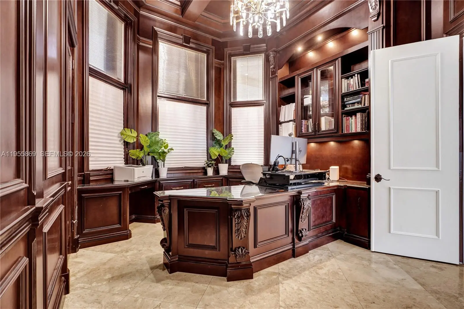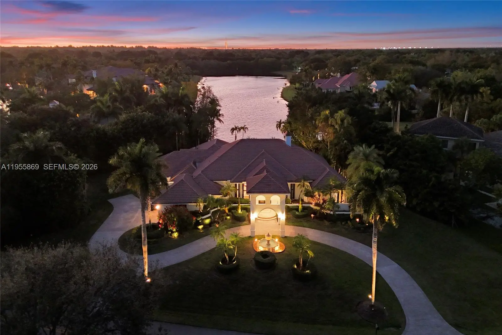 SPECTACULAR LAKEFRONT ESTATE located in the prestigious, guard-gated community of Windmill Ranch Estates, offering BREATHTAKING PANORAMIC LAKE VIEWS AND UNFORGETTABLE SUNSETS! Situated on a premier 1.41 ACRE lot with grand circular driveway, fountain, and porte-cochère entrance. This residence features 5 generously sized bedrooms, 5 bathrooms, office/den, PLUS a private cabana/guest house with full bath. Exquisitely upgraded home featuring custom finishes throughout, new AC systems, elegant built-in wine refrigerator cabinetry, and remodeled bathrooms with spa-style design. Designer statement chandeliers illuminate the interiors, complemented by all LED interior ceiling and exterior landscaping lighting for a sophisticated modern ambiance. Marble floors through-out and floor-to-ceiling windows highlight the expansive living areas complete with fireplace and wet bar. Chef’s kitchen boasts a center island, gas stove, and top-of-the-line appliances. Resort-style outdoor living ideal for entertaining with an oversized re-tiled pool with spa and sunken seating area, summer kitchen, extensive patios, and large fenced-in yard. In addition, Smart Home controlled lighting, pool system & security cameras, accordion hurricane shutters, and side-entry 3-car garage. Ideally located with easy access to major highways, top rated hospitals, shopping & dining, PLUS A+ rated schools!