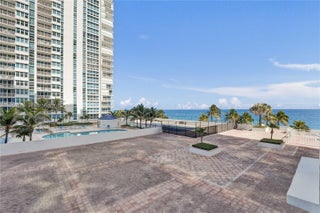 Step into this exquisite 2 bedroom, 2 bath beachfront residence offering 1,630 sq ft of living space and panoramic ocean views that greet you from the moment you enter. Floor-to-ceiling impact glass windows flood the home with natural light while providing peace of mind and effortless indoor-outdoor living. The expansive open living and dining area flows seamlessly onto an oversized private balcony, perfect for enjoying sunrise coffees, sea breezes, or evening relaxation with ocean vistas as your backdrop. Retreat to the spacious primary suite, complete with a large walk-in closet and a beautifully updated marble-accented ensuite bathroom. The second bedroom, also showcasing ocean views, can double as an impressive home office or guest suite. Throughout the unit, you'll find tile and woodgrain laminate flooring and thoughtful design touches that elevate the living experience. An additional separate storage unit is included. Resort-style amenities: heated pool, spa, tennis, pickleball, sauna, fitness center, covered parking, BBQ area, and a spectacular Sky Lounge with panoramic views and kitchen/entertainment space. Building features impact glass, secure entry, and well-maintained common areas. Prime oceanfront location with direct ocean access! Tenant occupied until August.