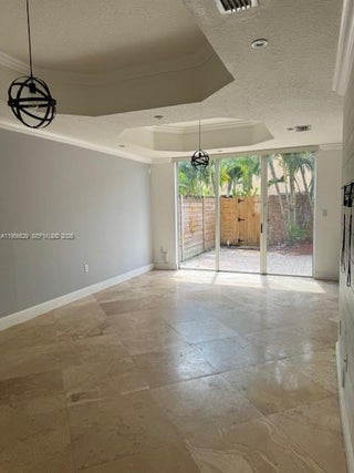 BEAUTIFULLY MAINTAINED 2BD /2.5 BA MEDITERRANEAN STYLE TOWNHOME IN QUIET, GATED COMMUNITY OF VENETIAN ISLES (TOSCANA). FEATURES A GATED COURTYARD ENTRY, COVERED FRONT PORCH, AND BRIGHT OPEN LAYOUT WITH TRAVERTINE FLOORS, CROWN MOLDING, TRAY CEILINGS, AND STYLISH FIXTURES THROUGHOUT. INVITED LIVING AREA, UPDATED OPEN KITCHEN WITH TWO-TONED SHAKER CABINETS, QUARTZ COUNTERTOPS, MODERN APPLIANCES, FARMHOUSE SINK, AND AMPLE CABINET SPACE. SPACIOUS DINNING AREA OPENS TO OVERSIZED PRIVATE FENCED PATIO, IDEAL FOR ENTERTAINING. UPSTAIRS PRIMARY SUITE OFFERS LAMINATE PLANK FLOORING, TRAY CEILING, WALK-IN CLOSET, AND UPDATED PRIMARY BATHROOM. THE SECOND BEDROOM IS GENEROUSLY SIZED WITH TASTEFULLY UPDATED 2ND BATHROOM. DEDICATED LAUNDRY ROOM WITH NEW MODERN WASHER AND DRYER, 1 CAR GARAGE PLUS EXTENDED DRIVEWAY. RESORT STYLE AMENITIES INCLUDE GORGEOUS COMMUNITY POOL, CLUB HOUSE, WITH CASCADING FOUNTAINS AND GARDEN VIEWS, KIDS PLAYGROUND AREA AND VOLLEYBALL COURTS. WELL KEPT COMMUNITY, NEAR GREAT AREA SCHOOLS, SHOPPING AND MAJOR ROADWAYS. AVAILABLE FOR OCCUPANCY APRIL 1, 2026.