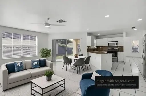 Exquisite Modern 4/3 Home in the Hammocks/Kendall - Only First and 1 Security Deposit. No HOA approval needed! This fully renovated home boasts state-of-the-art bathrooms and sleek new porcelain tile floors. The first floor features a separate bedroom and bathroom with a private entrance, perfect for in-law quarters or guest use. The master bedroom includes a spacious walk-in closet and an oversized shower. Enjoy the comfort of central air and ceiling fans both upstairs and downstairs. The open-concept kitchen seamlessly connects to a covered patio and a spacious fenced-in backyard, ideal for family BBQs. Situated on a corner lot, the property offers ample parking along with an attached 2-car garage. Requirements: Proof of income, credit score, background check.