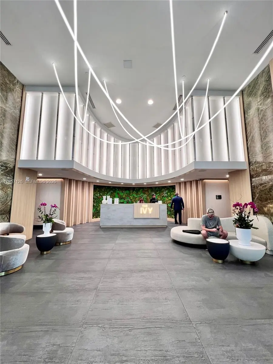 Enjoy a Corner Loft style at The Ivy; Double-Height Living Room with 1,533 SF being the Largest 2BR 2.5BATH suite with an additional open Den, featuring a double-height living room bringing natural lighting with floor-to-ceiling windows and an oversized balcony with turf flooring. The residence is fully upgraded with vinyl flooring throughout, a waterfall-edge quartz kitchen island with built in drawers, and custom kitchen cabinetry installed flush to the ceiling. Brand-new appliances include an LG refrigerator, dishwasher and KitchenAid oven & microwave. In-unit LG front-load smart washer and dryer. New smart lighting fixtures installed. Primary suite includes a custom-built walk-in closet and en-suite bath with a brand-new TOTO toilet featuring Tornado Flush technology. Entry and guest room closets upgraded with custom shelving. Enjoy all-new upgraded amenities, within walking distance to all major entertainment areas, Brickell City Centre, Mary Brickell Village, and Downtown, near the Metro and just minutes from I-95. Full-service amenities include a pool, spa, fully equipped fitness center, kids’ play area, riverfront access, assigned parking, 24-hour concierge, security, and valet services.