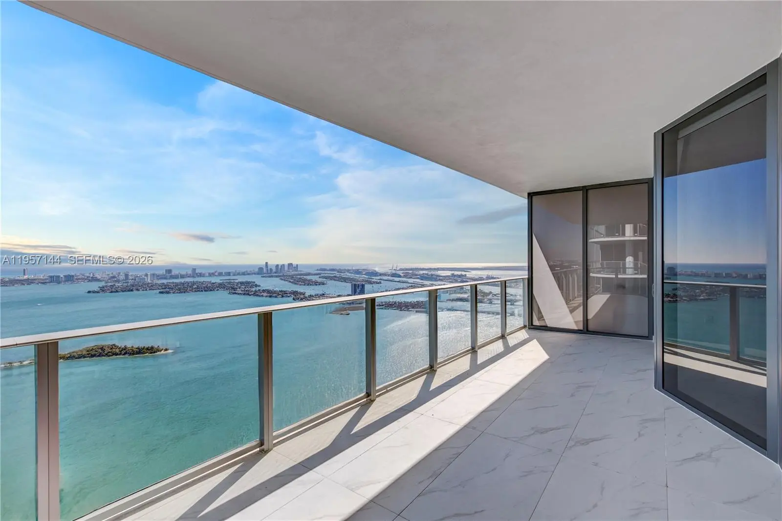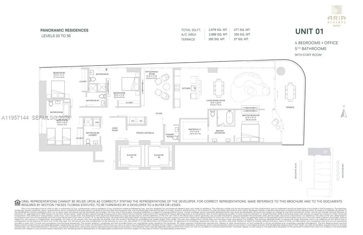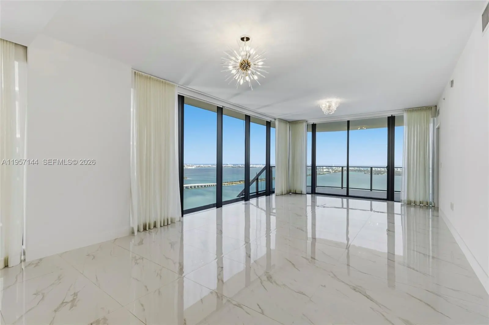Stunning new construction at Aria Reserve. Arrive via private elevator (2) into your exclusive entry foyer and step into this panoramic corner residence with dramatic, unobstructed views of Biscayne Bay, the Miami skyline, and the ocean. Completely finished unit and flooded with natural light, unit features built-out closets, motorized shades and blinds, and ideal east-to-west exposure to enjoy the sunrise and the sunset. Offering 4 full bedrooms, 5.5 baths, a versatile den, and a private staff suite with optional separate entry. Open-concept Thermador kitchen flows seamlessly into the living area with 10-ft floor-to-ceiling windows and a spacious balcony. Residents enjoy premier services and amenities—24-hour concierge, valet, covered parking, fitness and wellness center, spa, wine room, multiple pools, sports courts, grilling areas, children’s areas, and more.