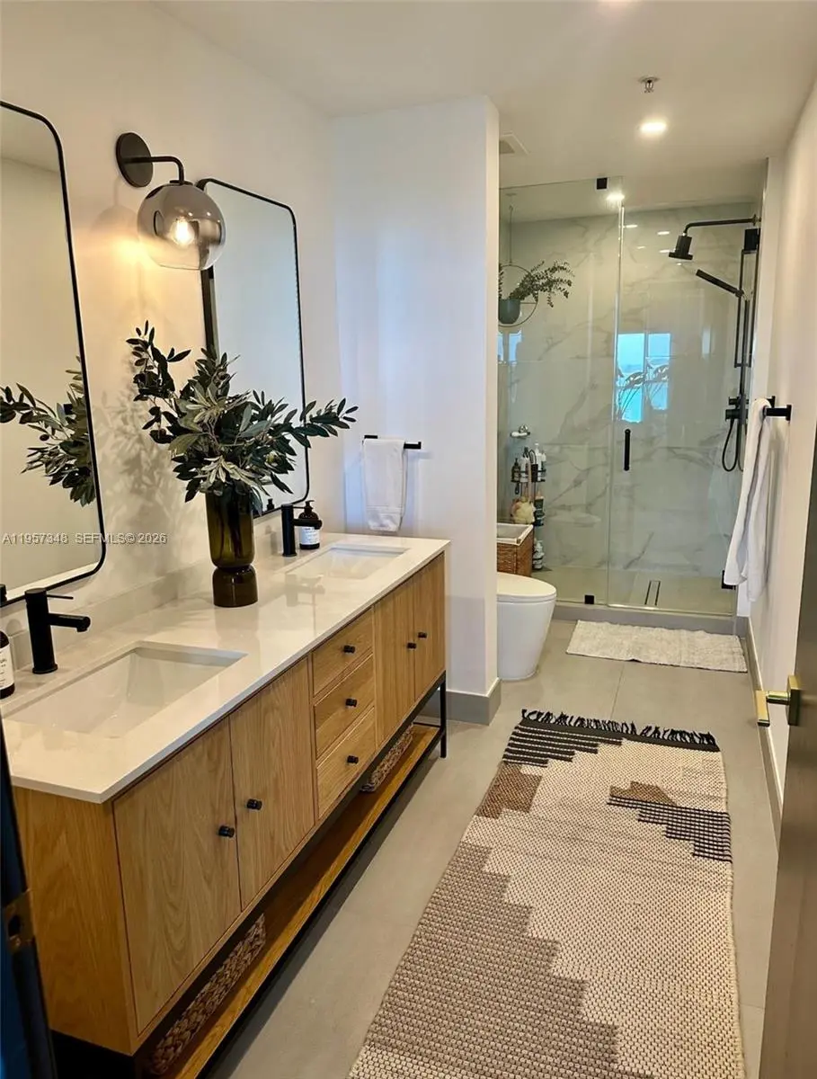 Welcome to the best line at 4Midtown! This FULLY RENOVATED corner unit offers 1,262 sq ft of modern living space with 2 bedrooms and 2 bathrooms. Enjoy stunning city and Biscayne Bay views through floor-to-ceiling windows, a wrap around balcony and a fully upgraded kitchen with top of the line appliances. Brand new AC unit just installed. Amenities include a pool deck, barbecue area, gym, steam room, sauna, 24 hour security and more.