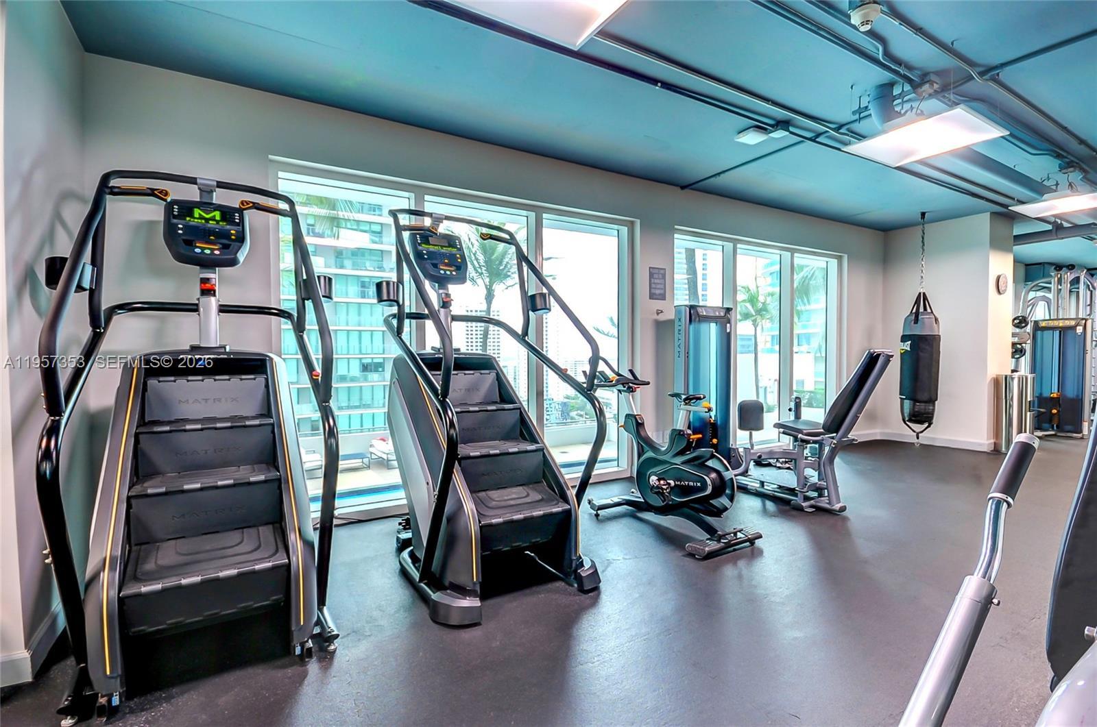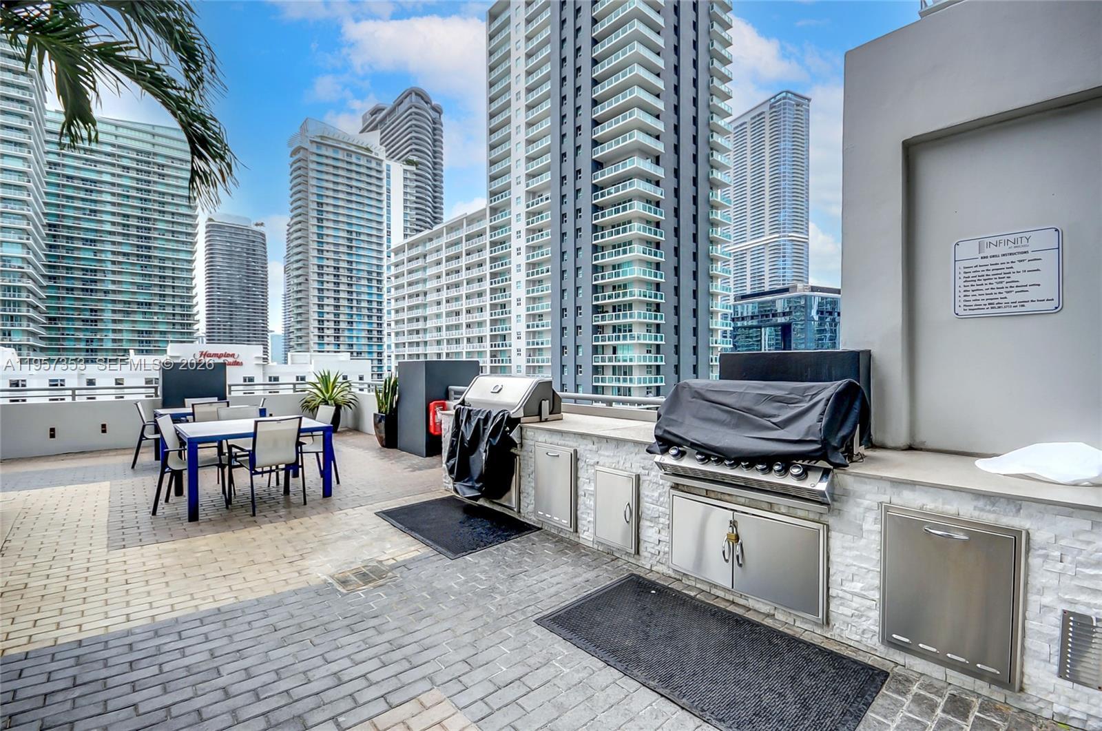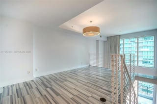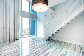 Beautiful loft at Infinity at Brickell featuring soaring double-height ceilings and floor-to-ceiling windows that fill the space with natural light. The upper level offers a spacious bedroom and full bathroom, while the main level includes a convenient half bath, open living area, and modern kitchen with stainless steel appliances and contemporary cabinetry. Full-service building with 24-hour concierge, security, pool, fitness center, and prime Brickell location within walking distance to restaurants, shopping, and entertainment.