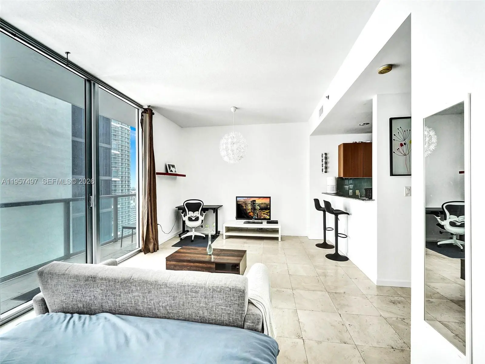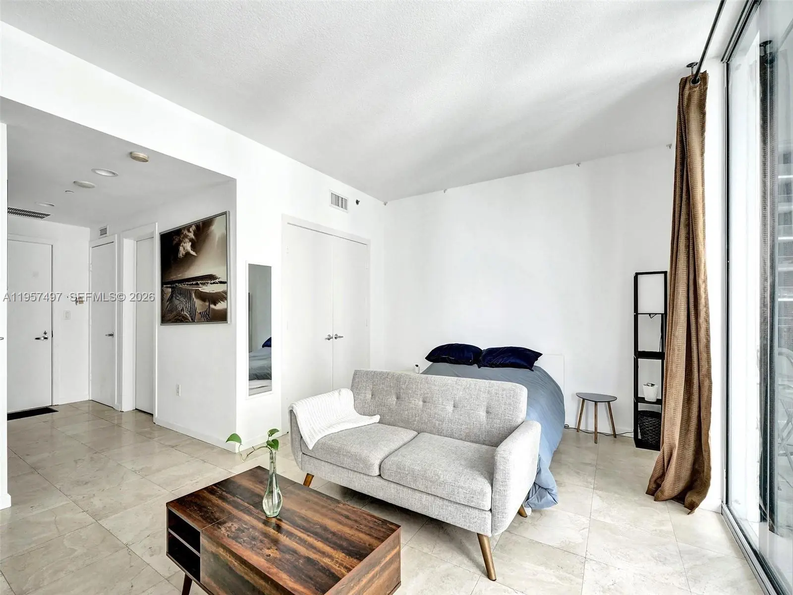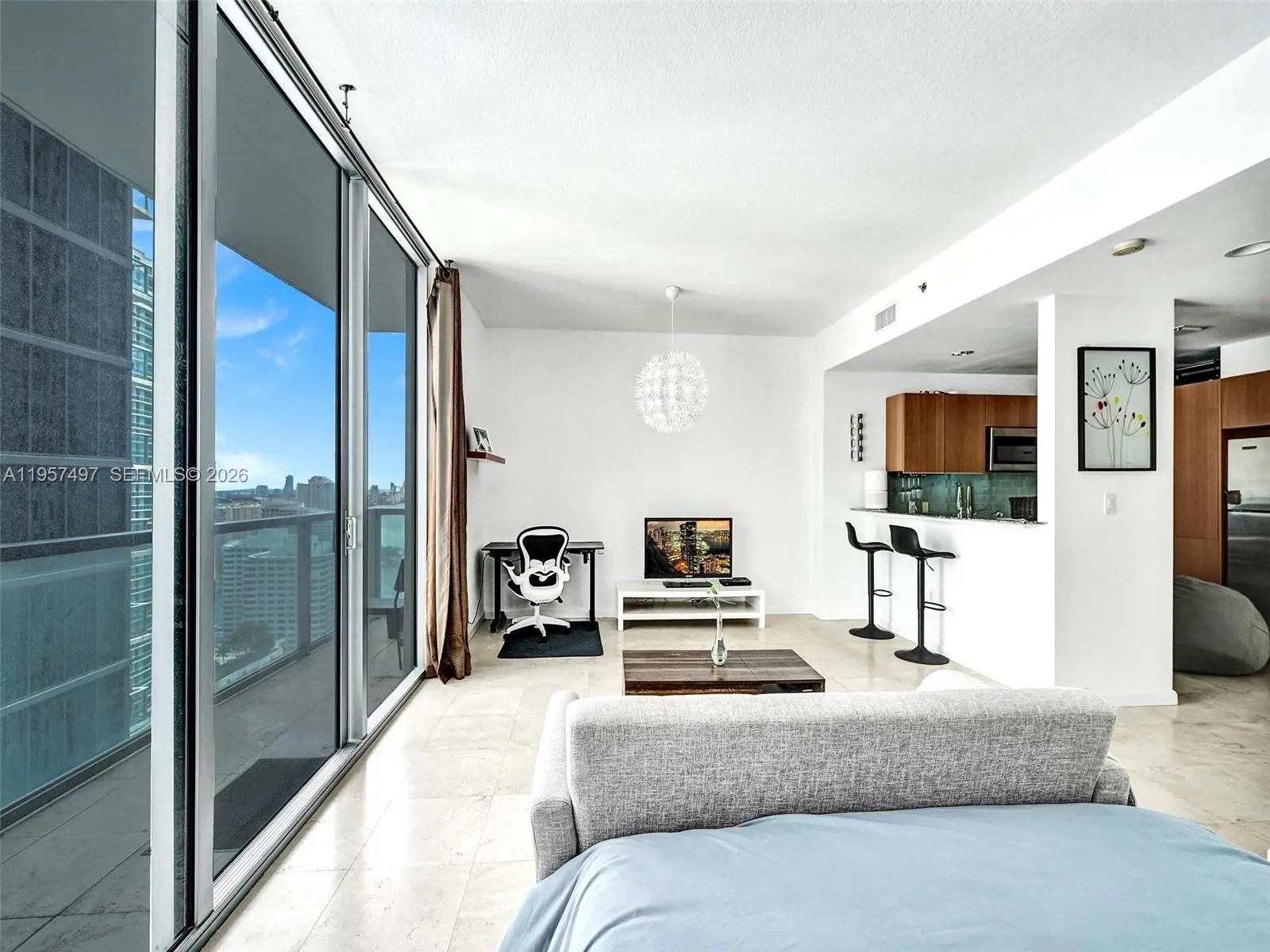 Fully furnished, spacious studio/loft located in the heart of Brickell, offering stunning city and partial water views. This modern unit features a contemporary kitchen with stainless steel appliances, granite countertops, wood cabinetry, marble floors, and floor-to-ceiling impact glass doors leading to the balcony. Washer and dryer inside the unit. Includes assigned parking and a flexible rental policy. Residents enjoy beautifully designed outdoor areas and resort-style amenities, including a state-of-the-art fitness center, swimming pool, sundeck, yoga/aerobics room, spa treatment room, game room, virtual golf, and billiards table. The building also offers 24/7 concierge, valet, and security. Prime location near Mary Brickell Village and Brickell City Centre, with direct access to a French bakery and easy access to Metro and public transportation.