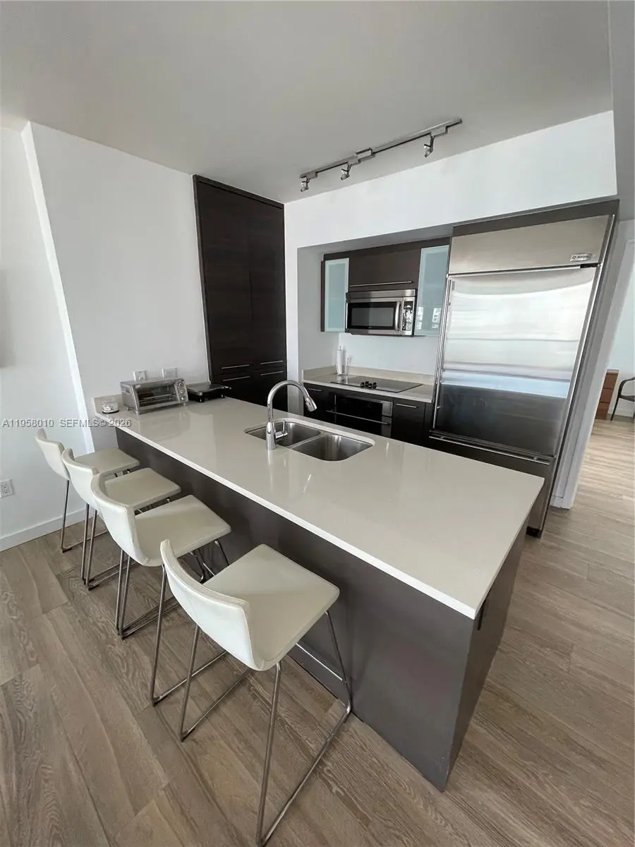 Bright, updated & spacious CORNER unit with city & water views at 500 Brickell. This 2/2 split plan apartment has stainless steel appliances, quartz countertops, wood-look porcelain tile, built out closets & more. 500 Brickell offers 24 hour security, gym, spa, two pools, movie theater ++. Move in OR invest & rent it out with a 30 day minimum. Live the Brickell lifestyle: walk to restaurants, work and entertainment. Minutes from US1, I-95, the Grove & Gables. Contact listing agent for showings.