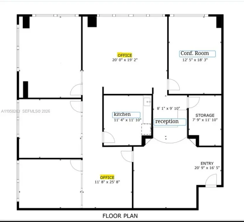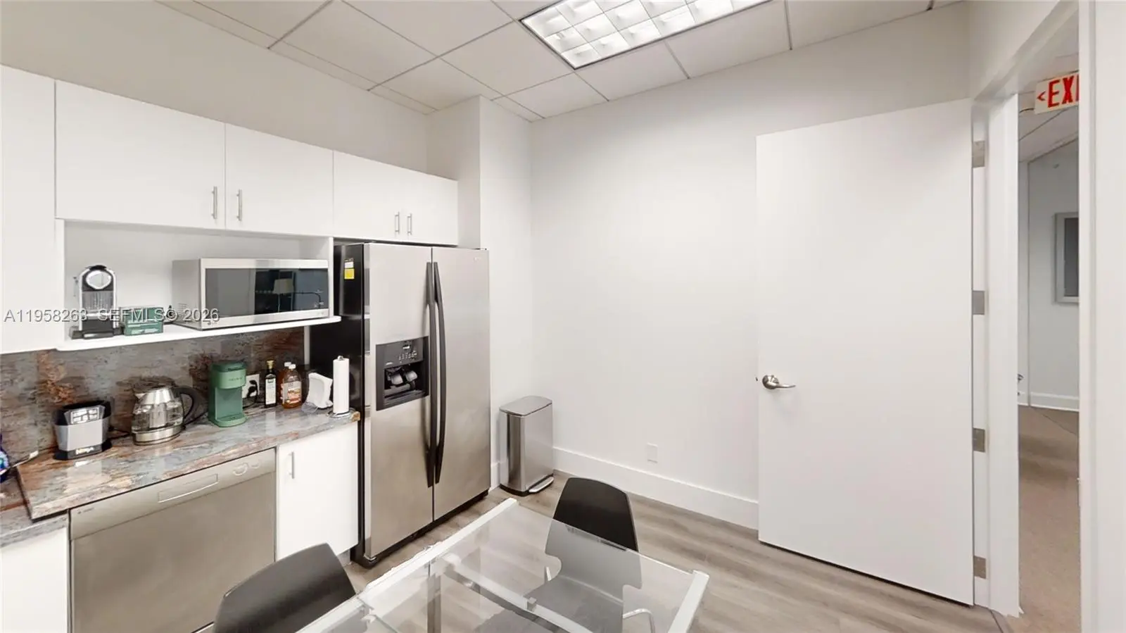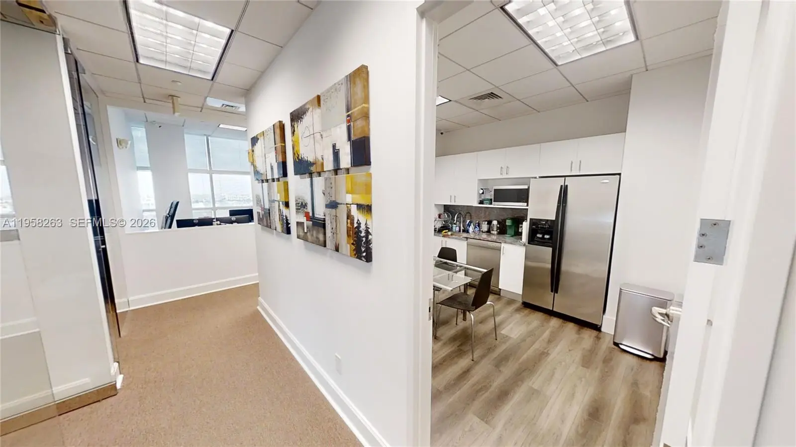 Shared Corner Office Fully Furnished 1472 sq ft available of the 2124sq ft total. Up to 3 separate work stations available plus large conference room and kitchen. One 25' x 12' office desk area, One 20' x 19' Five person workstation, One 8' x 10' reception desk workstation. Private entry waiting room, IT room and filing cabinets. 2 owner occupants in financial service industry. Latitude office building located on Miami Riverwalk path with on-site restaurants & valet.