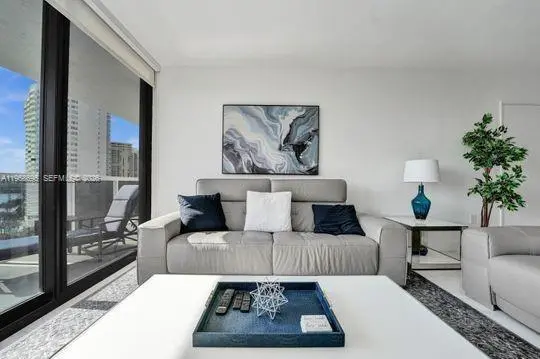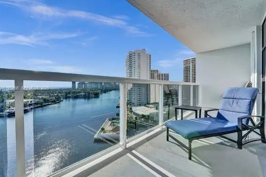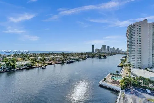 Rare furnished corner unit in a recently remodeled building offering 270-degree panoramic views of the ocean, Intracoastal Waterway, Golden Beach residences, city skyline, and western sunsets. This fully redesigned residence features a modern aesthetic, split-bedroom floor plan, new high-impact windows, and a spacious balcony accessible from two main living areas with views from every room.