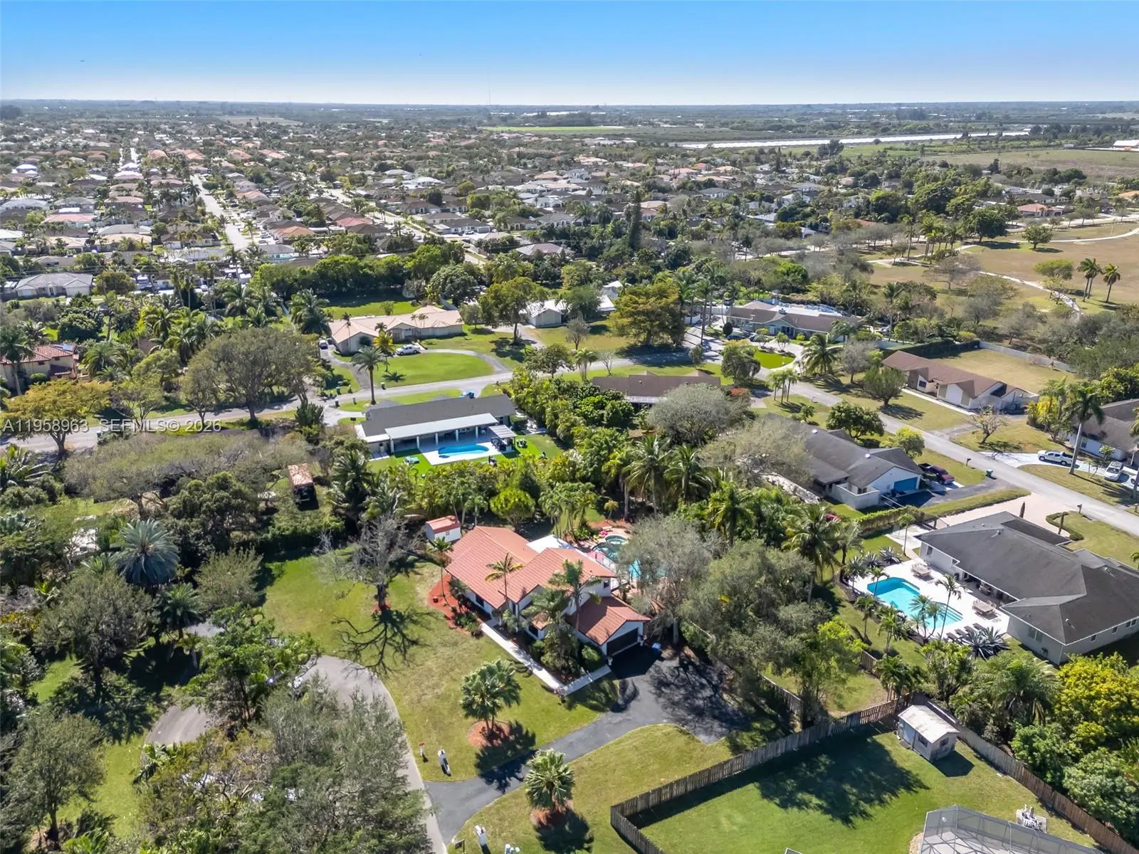 Sophisticated 4/2 estate on a rare half-acre lot, expansive patio, pool and exceptional design Located in the desirable Stonewood neighborhood, this 2,940 sq. ft. home features 4 bedrooms, 2 baths, a pool and spa on a massive 30,771 sq. ft Situated on a quiet cul-de-sac with ample space for a boat or RV. Highlights include two primary suites—one upstairs with a private sun deck and one downstairs ideal for in-law quarters—accordion shutters throughout, and generous living spaces. A rare opportunity with endless potential in a prime location.