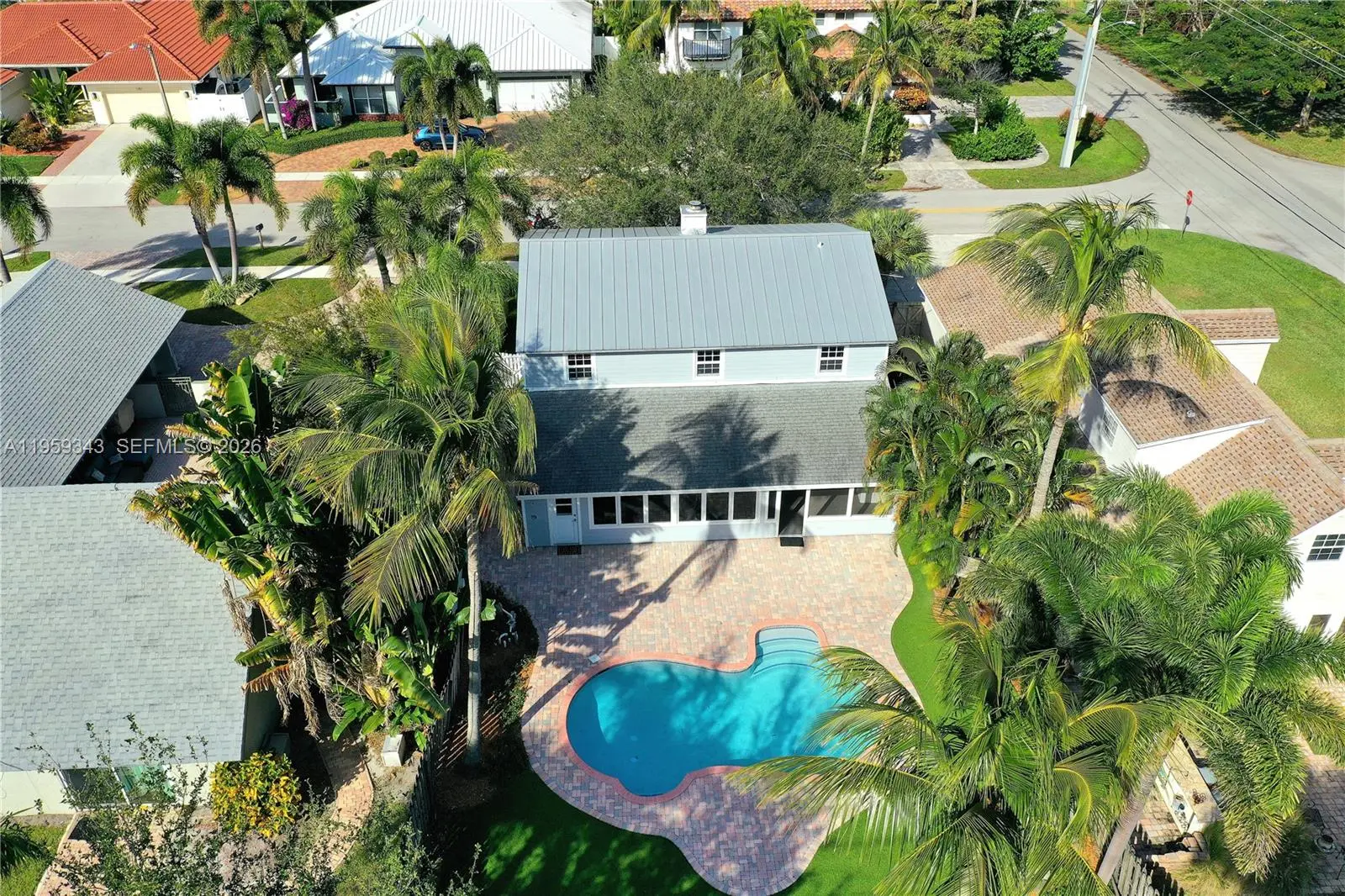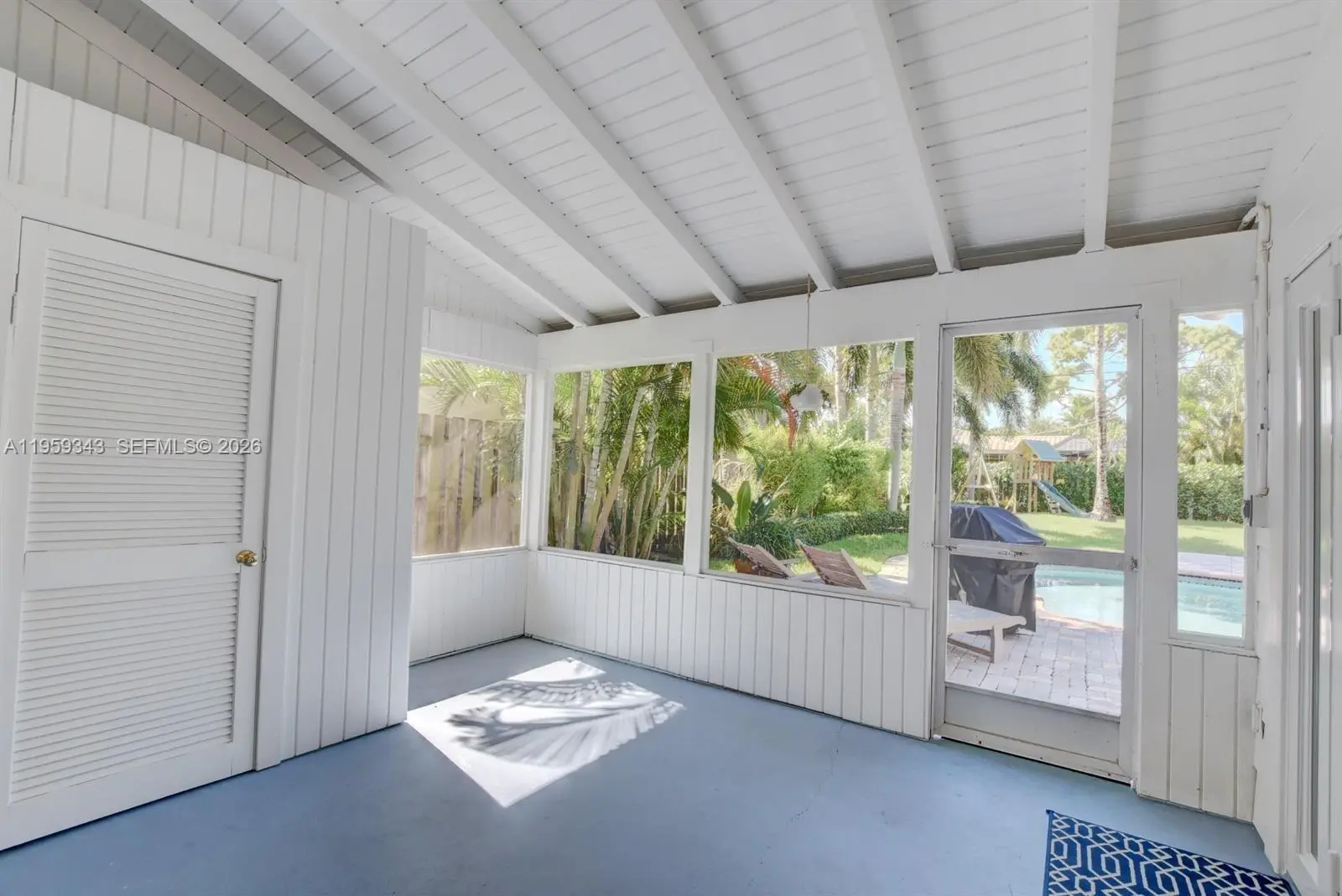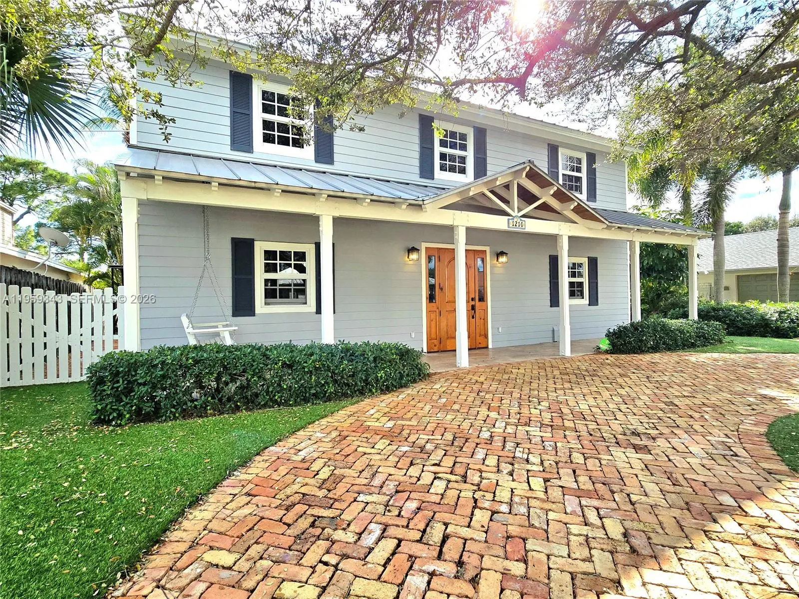 Located in the sought-after Palm Beach Farms East Boca neighborhood, this 4-bedroom + loft, 2.5 bath pool home features an inviting front porch and remarkable charm. The spectacular backyard features a beautiful just re-surfaced saltwater pool, maintenance-free high-quality artificial turf, an in-ground trampoline, shed, outdoor shower, and a brick patio. When you step inside the home you will notice a distinct warmth and coziness. The two-story foyer leads to a living room featuring a wood-burning fireplace, wainscoting, and oak wood floors. The kitchen is complete with white cabinets, granite counter tops, stainless steel appliances, and porcelain tile. The large dining area is great for entertaining and features built-in floor to ceiling cabinets. The Florida room/family room has 6 elongated windows, allowing for plenty of natural light and views of the backyard. The downstairs master bedroom features hard wood floors, a custom walk-in closet, wainscoting, and double doors leading to a covered porch. The renovated master bath features a brand-new vanity, double sinks, and a free-standing tub. An additional half bath and laundry room are downstairs with a door providing easy access to the backyard and pool. Three additional bedrooms are located upstairs, as well as a large loft/office. Home has been updated, immaculately maintained. Impact windows. Freshly painted and new carpet installed. AC unit was replaced in 2025. The home is situated on a quiet street. A-rated schools