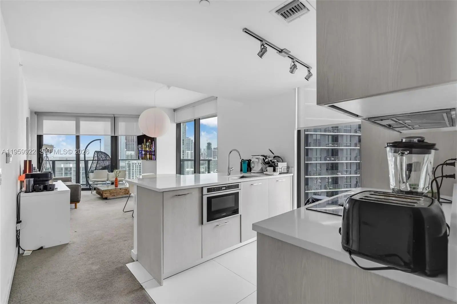 Bright and well-laid-out furnished residence at Paraiso Bayviews in Edgewater. This unit offers a practical split floor plan with two bedrooms and two bathrooms, providing good separation between living and sleeping areas. Floor-to-ceiling windows bring in plenty of natural light and open to a private balcony with city and partial bay views. The open kitchen features modern cabinetry, quartz countertops, and integrated appliances, connecting easily to the living and dining area. The primary bedroom includes ample closet space and a private bathroom with dual sinks and a glass-enclosed shower. The second bedroom works well for guests, a home office, or flexible use. Some areas of the unit feature carpeting, adding comfort to the bedrooms, while the main living spaces maintain a clean, modern feel. In-unit washer and dryer included. The unit is furnished, vacant, and move-in ready, and includes one assigned parking space. Paraiso Bayviews offers multiple pools, a rooftop pool, fitness center, spa, tennis courts, theater room, business center, children’s playroom, and 24-hour front desk. Convenient location near Midtown, Wynwood, the Design District, Downtown, and Miami Beach. Owner will consider a 6-month lease.
