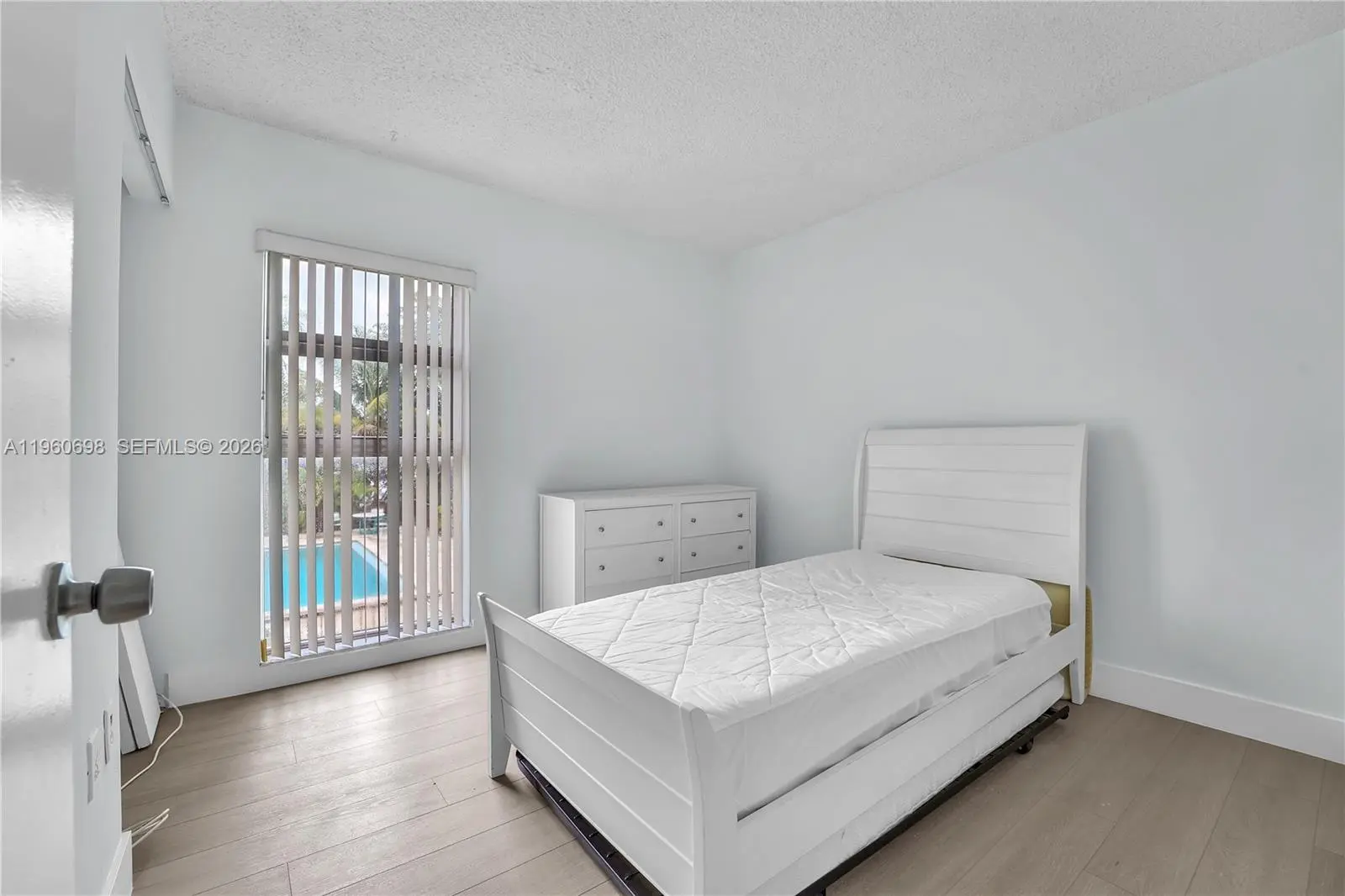 Large and charming pool-view 3 bedroom/2.5 bathroom condo with 1,538 sqft located in the heart of Fontainebleau on a lake. The unit features many updates such as new wood floors upstairs and tile on the main level, modern light fixtures, and a closed-in safer staircase! This 2-story condo comes with 2 assigned parking spaces and there is plenty of guest parking as well. Master bedroom balcony overlooks the pool and lake! Close to major expressways, the airport, FIU and many shops/malls/restaurants! Features newer electric range and refrigerator. Half bathroom is downstairs and all three bedrooms and two full bathrooms are upstairs. Amenities include: very nice pool area, small gym room, common laundry room next to the unit and mailroom in lobby. This is a great opportunity with lots of potential for a small family or for an investor as Fontainebleau has a demanding rental market.