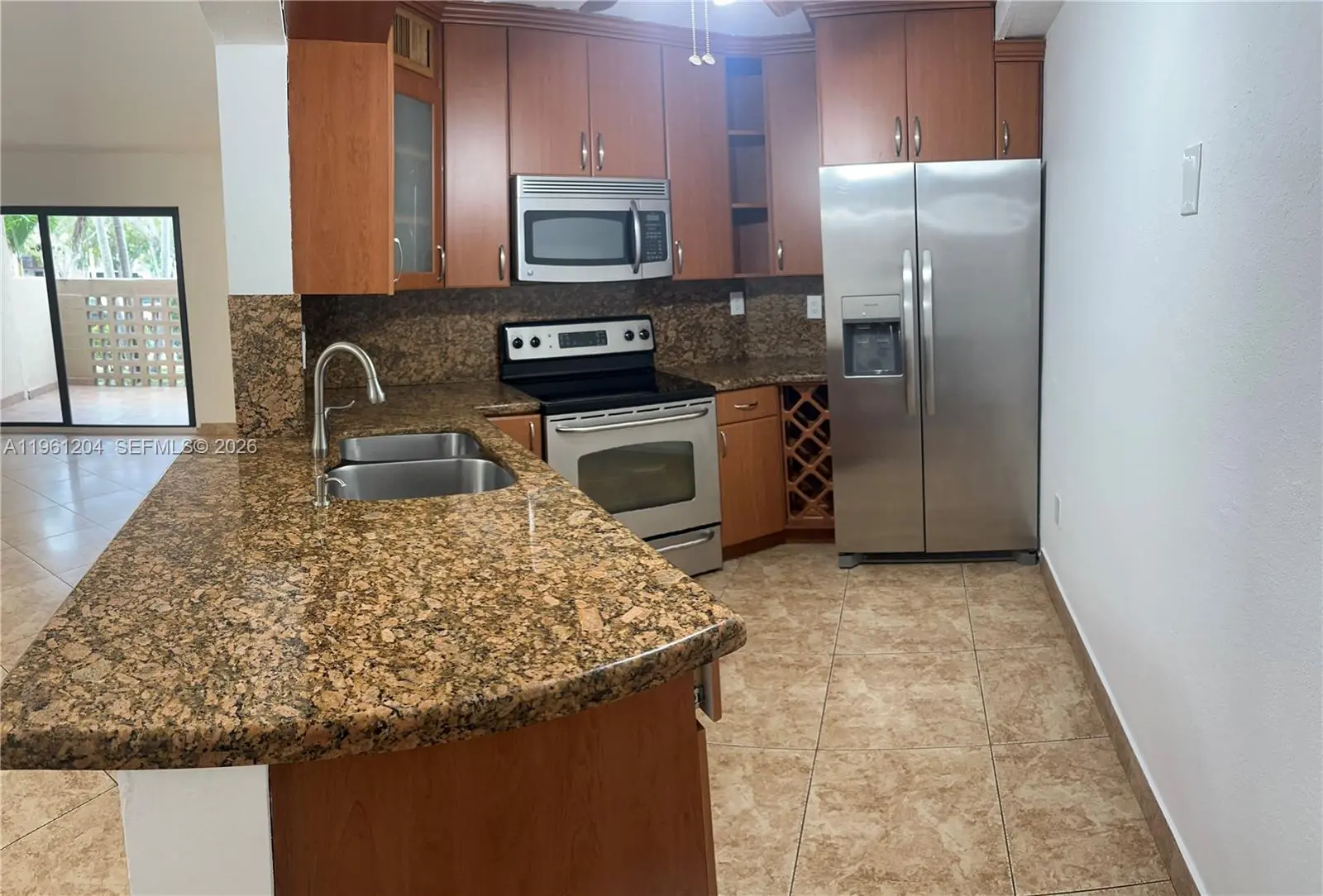 PRIME LOCATION AND COMFORTABLE LIVING: Centrally located near mayor higways, FIU, shopping centers, malls, parks and restaurants. This spacious unit features an open Living and Dining area, a modern kitchen with marble countertops, and a large balcony perfect for relaxing. Primary bedroom with walk-in closeth, in unit laundry with washer and dryer. 1 assigned parking space. Total interior living area: 1.000 sq. ft. Community amenities inckuide swimming pool, tennis court, gated community and 24 hour security.