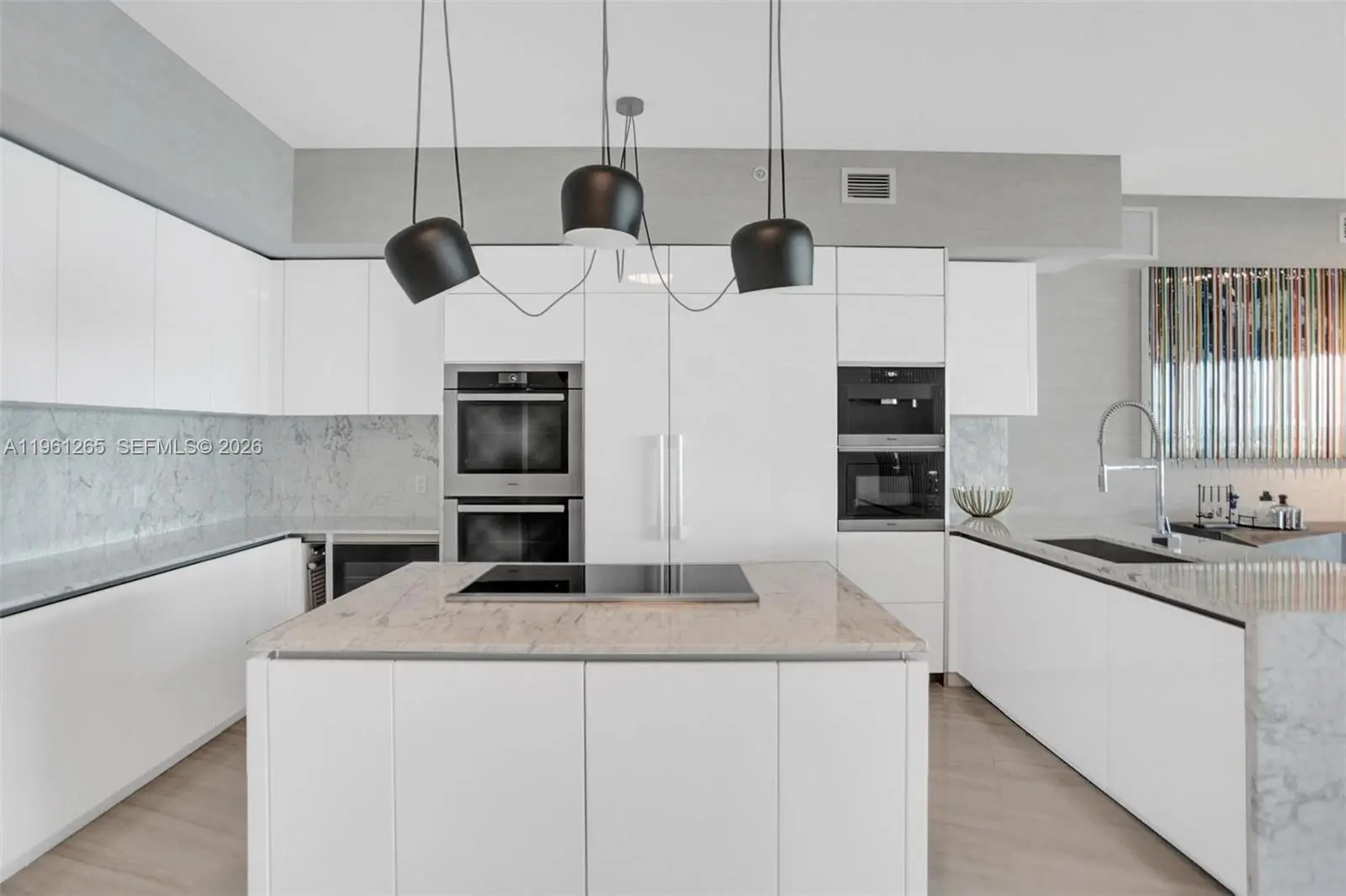 Aventura’s Only Private Island. Experience the unparalleled prestige of Privé Island, an exclusive twin-tower enclave set on an eight-acre private oasis. This masterfully curated 3BR/4.5BA residence spans 3,032 SF of pure sophistication, featuring a professional "Contemporary Transitional" design that perfectly balances modern edge with timeless warmth. Step inside to an expansive area with floor-to-ceiling glass that frames unobstructed, panoramic water views from every vantage point. The flow-through layout leads to oversized, deep terraces—the ultimate setting for both golden sunrises and sunsets over the Intracoastal. The interior is a showcase of elite craftsmanship, boasting exquisite flooring and ceilings, fantastic wall decor and a gourmet chef’s kitchen equipped with top-tier Miele appliances and custom cabinetry. Living at Privé is a five-star experience every day. Residents enjoy over 70,000 SF of world-class social spaces, including a massive gym and spa, a private marina, two shimmering pools, a private beach, tennis courts, and an on-site signature restaurant. Additional luxuries include a wine cellar, social lounges, a curated children’s room, and a scenic perimeter fitness trail. Located just moments from the world-class shopping of Bal Harbour and Aventura Mall, yet tucked away in total seclusion. Offered fully furnished and professionally designed—this is a rare, turnkey opportunity to own in Aventura’s most coveted and secure enclave.