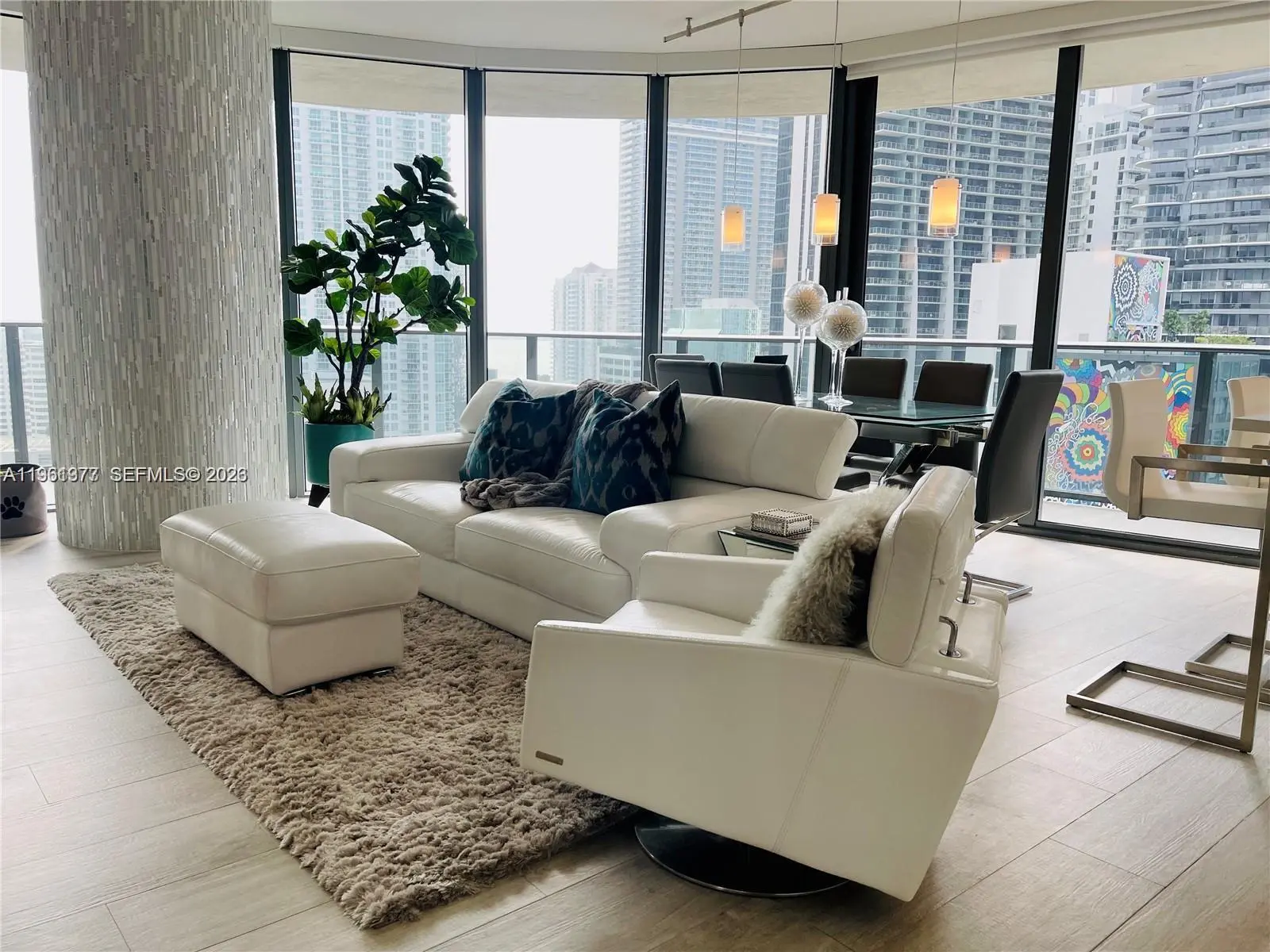 Coveted Brickell Heights East 03 Line - Beautifully Furnished 2/2.5 - Available Immediately - 2 Self Parking - 6 month option possible - Opulent updates and finishes, fully furnished plus absolutely exquisite views. Southeast corner wrap around double suite residence in a split plan design offering excellent privacy -plus- an additional half bath. Highly customized with fully updated hand-crafted millwork throughout, redesigned highly customized closets with personalized designer wood cabinetry, customized designer recessed lighting, specialized wall finishes plus fully automated blackout and privacy shades in every room. The fully updated millwork throughout features custom made solid wood doors for sound buffering and privacy, high end cabinetry materials plus customized framing and baseboards. Premium view corner residence facing east, south and west offering miles of extended bay, ocean and city views plus a large wrap around corner balcony. 2 assigned self-parking spaces - very rare. Located in the very center of everything Brickell. Fast Assoc app process for rapid move in. ShowingTime/Text/Whatsapp/Call LA to show. List pricing is for annual lease, less than annual lease at higher rate.