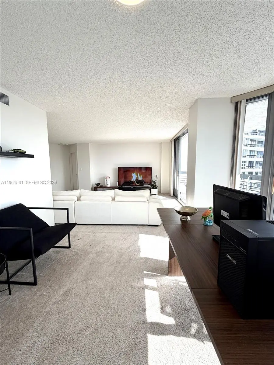 Experience refined luxury and stunning panoramic views in this exceptional 2-bedroom, 2-bathroom corner residence featuring a den and a wrap-around balcony. Located in the highly desirable Mystic Pointe Tower 500, this home offers breathtaking water, city, and golf course views from every room. Residents of Tower 500 enjoy access to premier amenities, including tennis and pickleball courts, a fully equipped gym, fitness classes, a recreation lounge, and a card room. The resort-style pool area with a Jacuzzi is perfect for relaxation, while valet service and five electric vehicle charging stations at the town center provide added convenience. This pet-friendly community welcomes your furry companions. New AC installed in 2023. Schedule your private showing today.