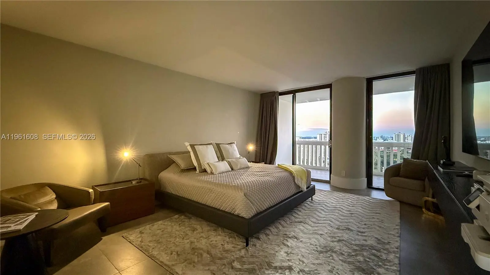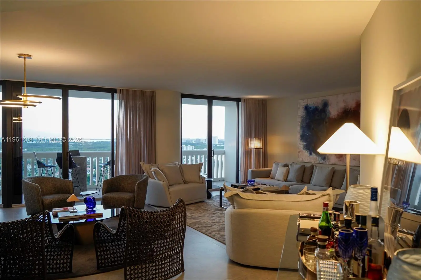 Stunning and fully renovated apartment with Spanish flooring in matte light gray porcelain throughout, a brand-new Monogram & Miele appliances, and granite stones imported from Brazil. All the bathrooms were redone from scratch, including all the finishing touches with the smallest details in good taste and sophistication of the showers, faucets all in matte black, giving a very modern sophistication. The view is both to the south, being able to see along the South Beach, the bay in the background with boats and from the rooms the view to the north of the bay, the Hard Rock hotel and casino, etc. The apartments are all decorated with almost unused furniture by a Brazilian architect. 16 tennis crts, pickleball crts, swimming pools, 2 floors of gym with classes, 3 wonderful restaurants!