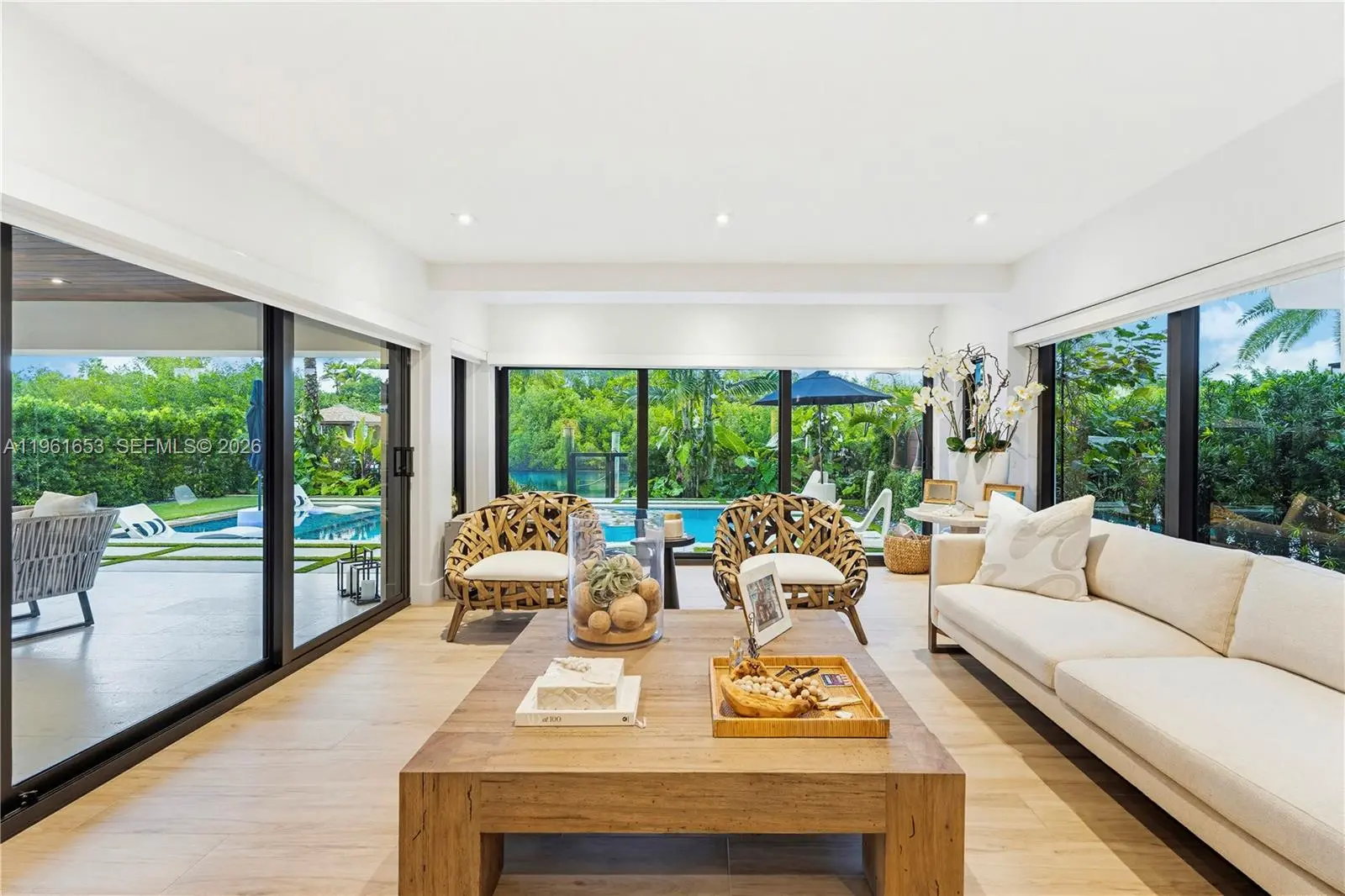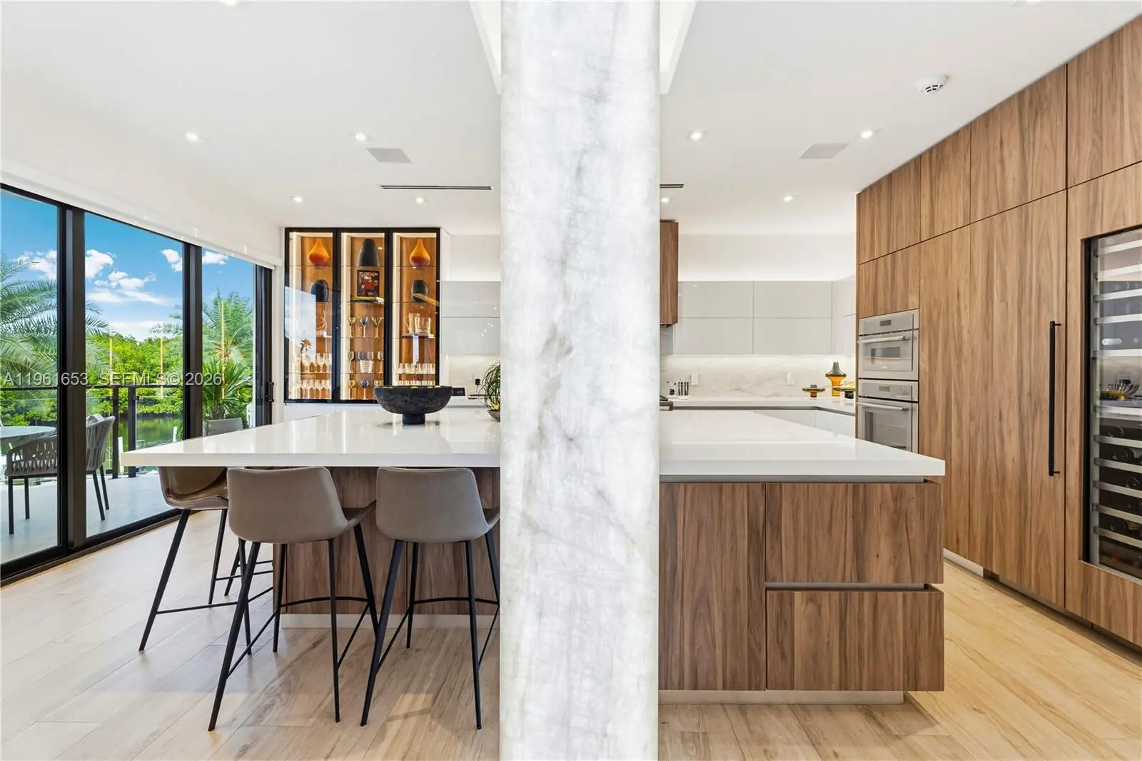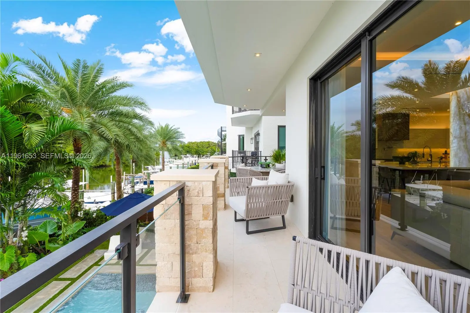 Introducing Seaglass Pointe, Luxury Waterfront Living Redefined. Thoughtfully reimagined from the ground up, Seaglass Pointe is a one-of-a-kind luxury waterfront residence where exceptional design meets extraordinary water views from every level. This fully redesigned home offers over 5800 sq ft, 3 bedrooms & 5.5 baths, with the flexibility to easily convert back to a 4-bedroom layout. Each bedroom is a private ensuite with walk-in closets, creating a retreat-like experience throughout the home. No detail was overlooked from impact windows & doors & a newly installed metal roof to all-new plumbing, electrical, A/C systems & a private elevator servicing every floor. The chef’s kitchen, outfitted with top-of-the-line appliances, flows seamlessly into expansive living & entertaining spaces designed to embrace the surrounding water views. Outdoors, a heated pool & TWO private boat slips directly behind the residence create the ultimate South Florida boating lifestyle. The crown jewel is a spectacular rooftop entertaining level featuring indoor–outdoor living & a temperature-controlled glass wine cellar, the perfect setting for sunset gatherings overlooking the water. Located within a prestigious guard-gated waterfront community, residents enjoy resort-style amenities including a private sandy beach, tennis/pickleball courts, clubhouse, gym, heated pool/spa, nature trails & a scenic waterfront boardwalk. Seaglass Pointe is more than a home — it’s a statement in waterfront living.