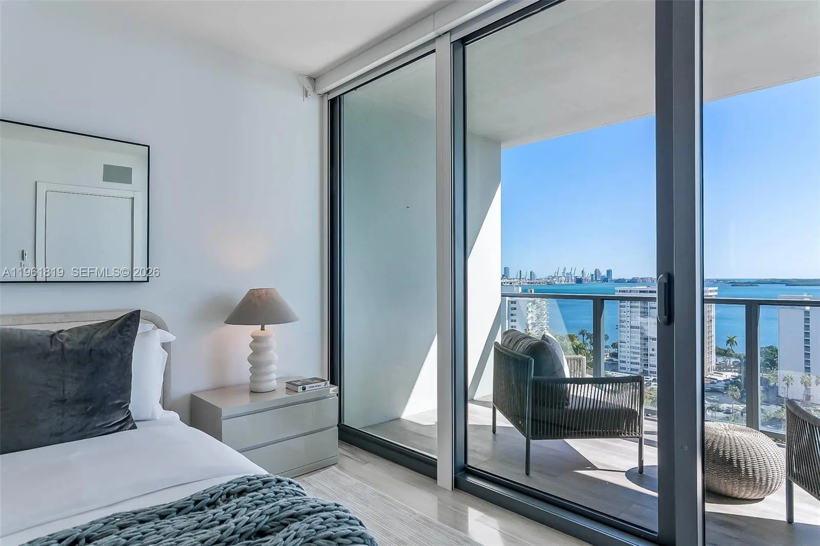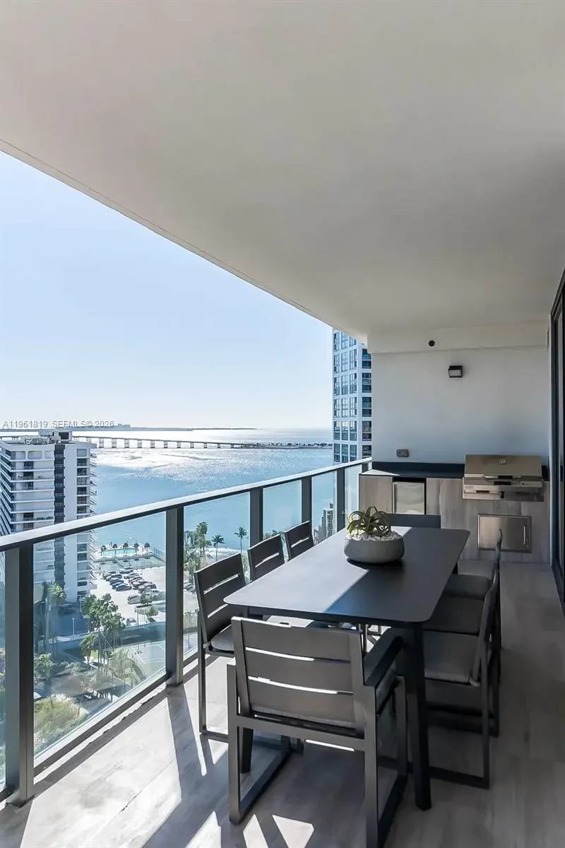 Wake up to expansive water and ocean-facing views — rarely found in newer Brickell construction and the defining element of this residence at Echo Brickell. Located on the coveted 02 line, this 1-bedroom, 1.5-bath home offers the largest one-bedroom layout in the building and the only line with direct ocean and open water exposure. Floor-to-ceiling glass fills the space with natural light, creating an open, calm atmosphere rarely achieved in one-bedroom residences. The kitchen is outfitted with Wolf and Sub-Zero appliances, while the spacious balcony features a built-in summer kitchen — an exceptionally rare offering in Brickell. Designed for seamless indoor–outdoor living, the balcony becomes a true extension of the home with water views as the backdrop. Echo Brickell is a boutique, full-service building offering a resort-style pool with bar service, a state-of-the-art fitness center, and a quieter, more residential feel. Perfectly positioned in south Brickell, the location allows for easy access in and out of the neighborhood while remaining highly walkable to dining, waterfront paths, and city conveniences. This residence stands apart for its view, layout, and location — the strongest one-bedroom offering in the building. Tenant occupied until July 14, 2026.