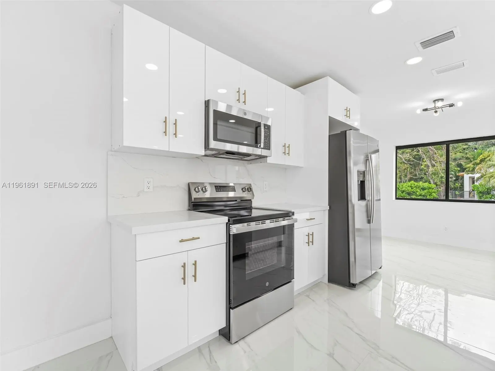 Experience modern luxury in the heart of Silver Bluff at this stunningly reimagined residence. Situated on a premier corner lot, this 3BR/2.5BA masterpiece features a brand-new barrel tile roof and full high-impact windows and doors for ultimate peace of mind. Step inside to an expansive open-concept floor plan adorned with exquisite Calacatta tile throughout. The chef’s dream kitchen boasts a dramatic waterfall island, premium stone accents, and state-of-the-art appliances, perfect for high-end entertaining. The primary suite and guest rooms offer designer finishes and spa-like bathrooms. Outside, the oversized lot provides rare privacy in an urban oasis. Ideally located just minutes from Coconut Grove, Brickell, and Coral Gables. Great school district. Truly a move-in-ready gem for the discerning buyer.