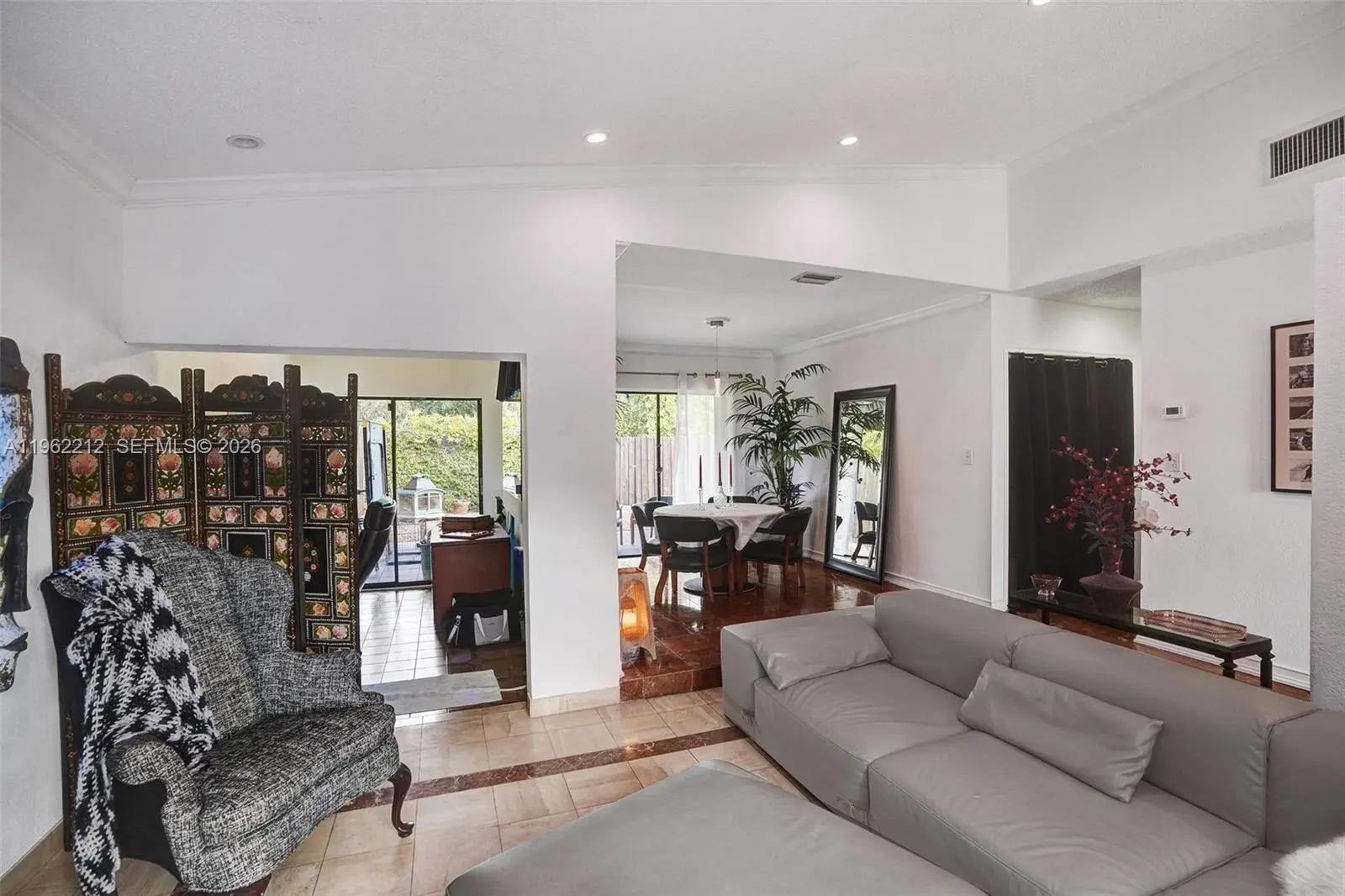 Where Architectural Charm Meets Family Living Ideally situated at the end of a quiet cul-de-sac, this former developer’s model home is a rare find that perfectly balances architectural elegance with the warmth of a true family sanctuary. Upon entering, you are greeted by a breathtaking living room featuring high ceilings and an abundance of natural light that sets an inviting tone for the entire residence. The home’s unique character continues in the private den, which boasts a professional fish tank built directly into the wall—a stunning focal point for a home office or library that overlooks the terrace. At the heart of the home, the kitchen offers a comfortable space for daily life with stainless steel appliances. The transition to outdoor living is seamless, beginning with a private front patio that creates a secluded nook for quiet afternoons. The rear of the property features a comfortable backyard with plenty of space to design a custom swimming pool, while uniquely opening up to an expansive community green area that provides a safe and endless playground for children. With its prime location steps from the park and just minutes from major roads, shopping, and dining, this home offers the ultimate lifestyle for those who value both privacy and convenience. Come see for yourself why this home was designed to entertain.