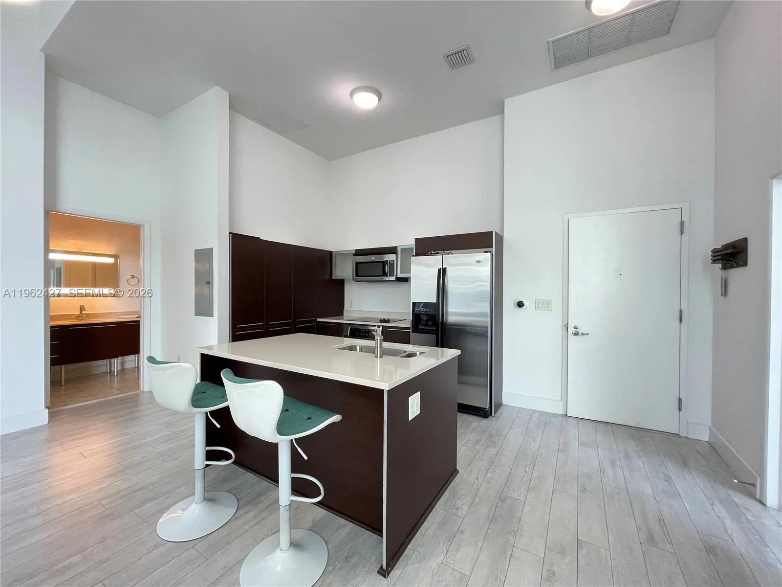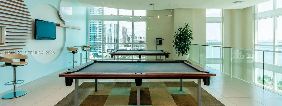Spacious 2BR/2BA condominium residence at Quantum on the Bay featuring panoramic bay and Margaret Pace Park views. Abundant natural light and open layout. The unit offers laminate flooring, custom walk-in closets, and an Italian dark-wood kitchen with island. Full-service building with resort-style amenities including two swimming pools, state-of-the-art fitness center, club room, theater, business center, convenience store, dentist office, and beauty salon. Prime Edgewater location directly across from Margaret Pace Park with tennis, basketball and volleyball courts, dog park, waterfront walking paths, and restaurants. Minutes to Downtown Miami, Brickell, Midtown, Wynwood, Miami Beach, and Miami International Airport.