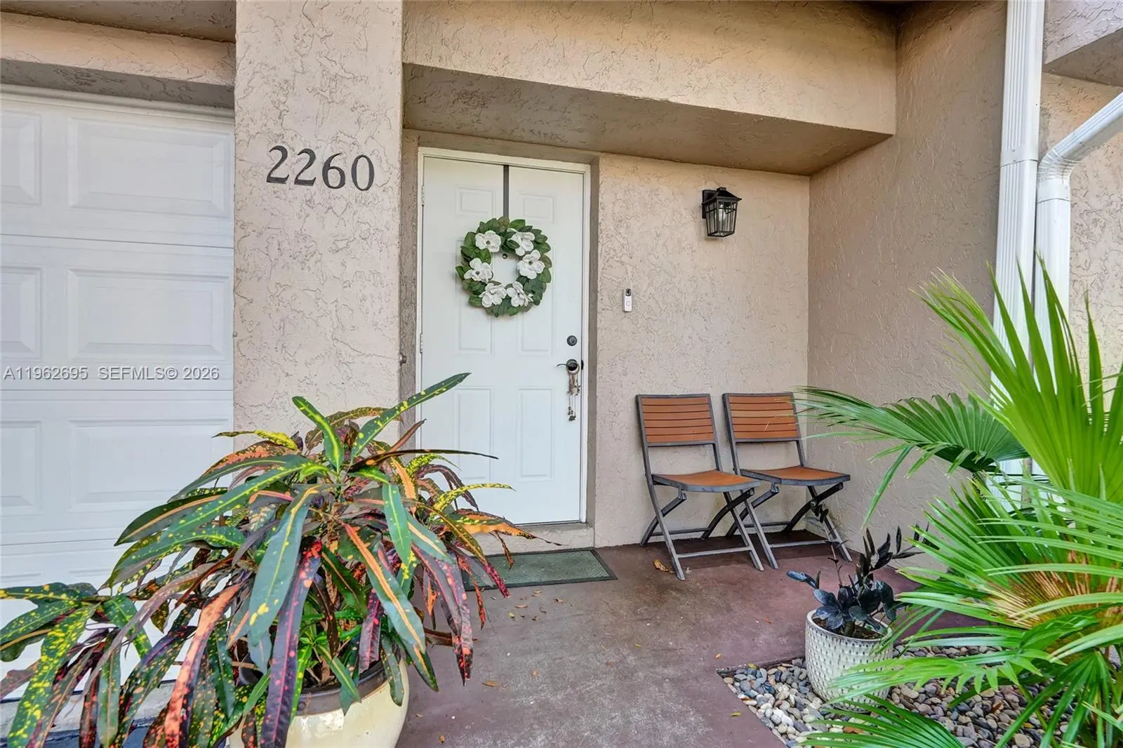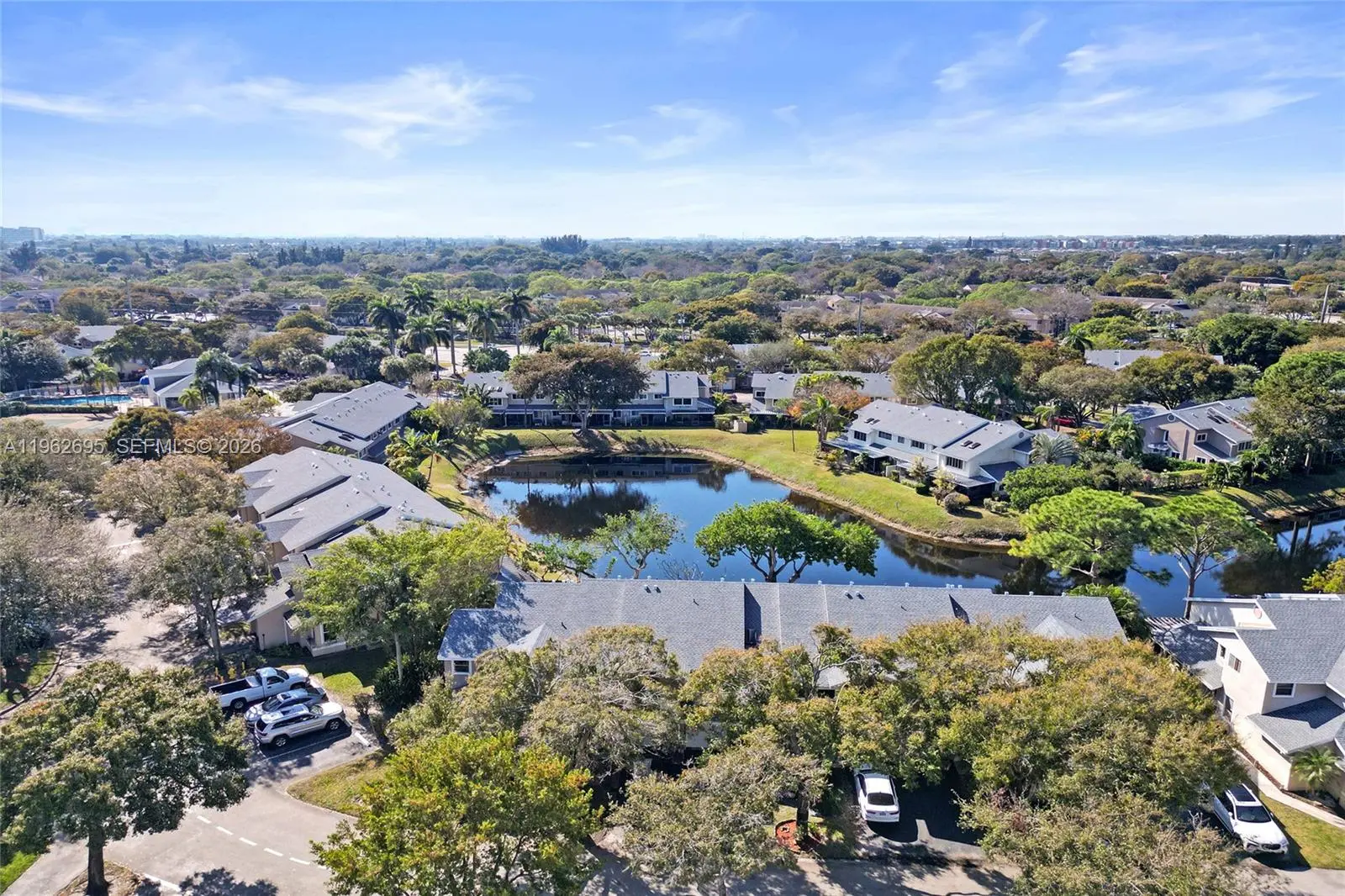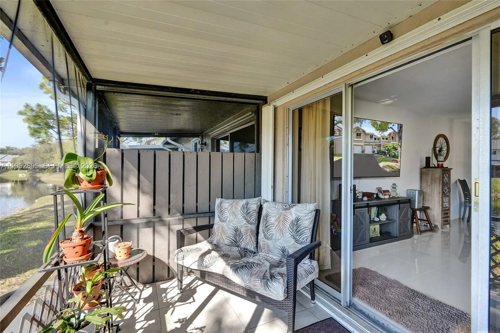 Beautifully updated 2-bedroom, 2.5-bath townhouse situated on a large lot with mature trees, just steps from the pool, tennis and pickleball courts, and clubhouse in the highly sought-after Discovery Pointe community. This lovely home features a desirable split floor plan and numerous upgrades, including a new A/C unit, impact garage door, upgraded attic insulation for improved energy efficiency, new light fixtures and faucets, a stylish barn door in the primary bedroom, redesigned kitchen with a new stove, new ceiling fans, and new carpet on the stairs. Additional updates include a new roof, new gutters, and a new water heater. The home offers a spacious living room and a formal dining area. The kitchen showcases beautiful off-white cabinetry, generous countertop space, a stylish tile backsplash, and stainless-steel appliances. The spacious primary bedroom features an updated en-suite bathroom and a walk-in closet with custom cabinetry. The second bedroom is conveniently located near the second full bathroom. Enjoy year-round outdoor living on the large, tiled, screened-in patio overlooking a beautiful lake view.