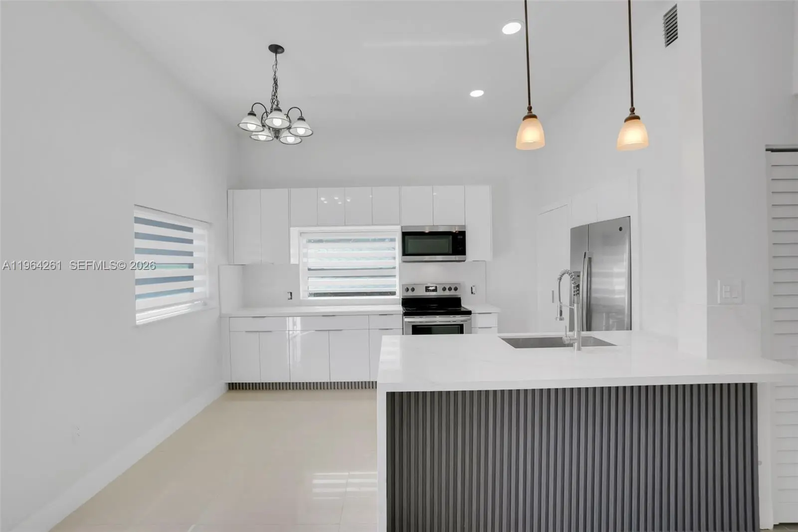 Move-in ready home with a desirable split floor plan and modern updates throughout. Features include tile flooring throughout, high ceilings, textured walls, zebra blinds, and updated pocket lighting. Brand-new kitchen with modern white cabinets, stainless steel appliances, and a waterfall peninsula. Convenient washer and dryer located off the kitchen. Completely remodeled bathrooms and a primary suite with a built-in walk-in closet. Major upgrades include roof (2020), A/C (2020), updated electrical, updated windows with hurricane shutters, tankless water heater, and a fully fenced yard. <b>Ample parking available on both the side and front of the property, perfect for multiple vehicles and guests</b>. Centrally located and ready to impress.