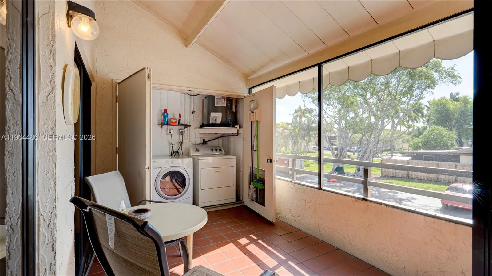 Tastefully renovated 2nd floor corner condo in gated community with pool. This light and spacious totally renovated home features an open-concept and split 2 bedroom/2 bathroom layout for maximum privacy, plus large screened porch and W/D in unit. Updated bathrooms and kitchen with custom cabinets, granite countertops, functional peninsula and glass enclosure. Lots of closets with walk in closet in master bedroom. LED lights, no popcorn ceilings and freshly painted white. Includes 1 assigned parking located in front of the unit and guest spaces. Centrally located in North Miami, close to Aventura, and easy access to I-95, Miami and Ft Lauderdale airports. Monthly fees cover common areas, HBO water, sewer, trash removal and reserves. Sold as is. Unit can be rented after 2 years.