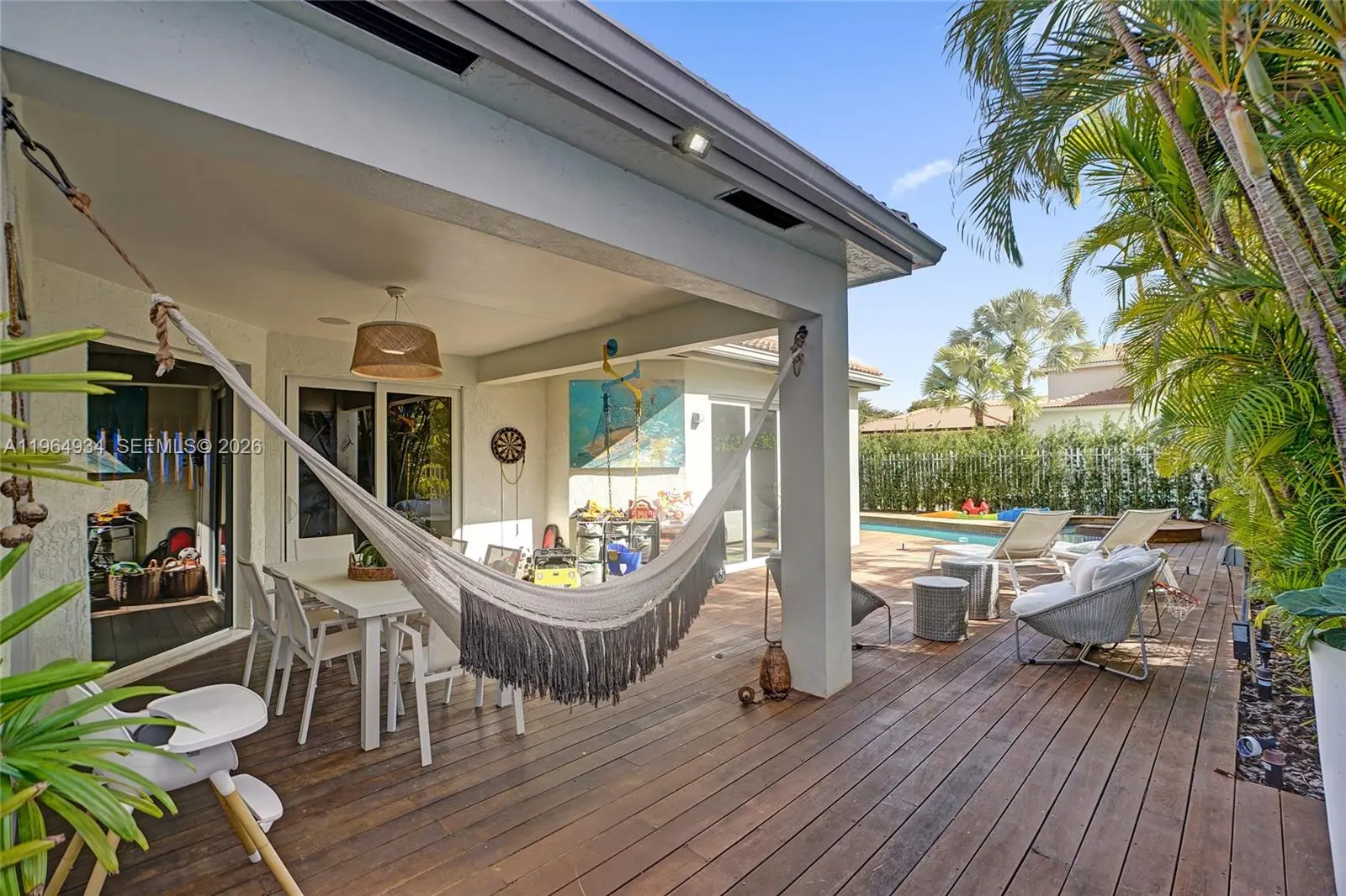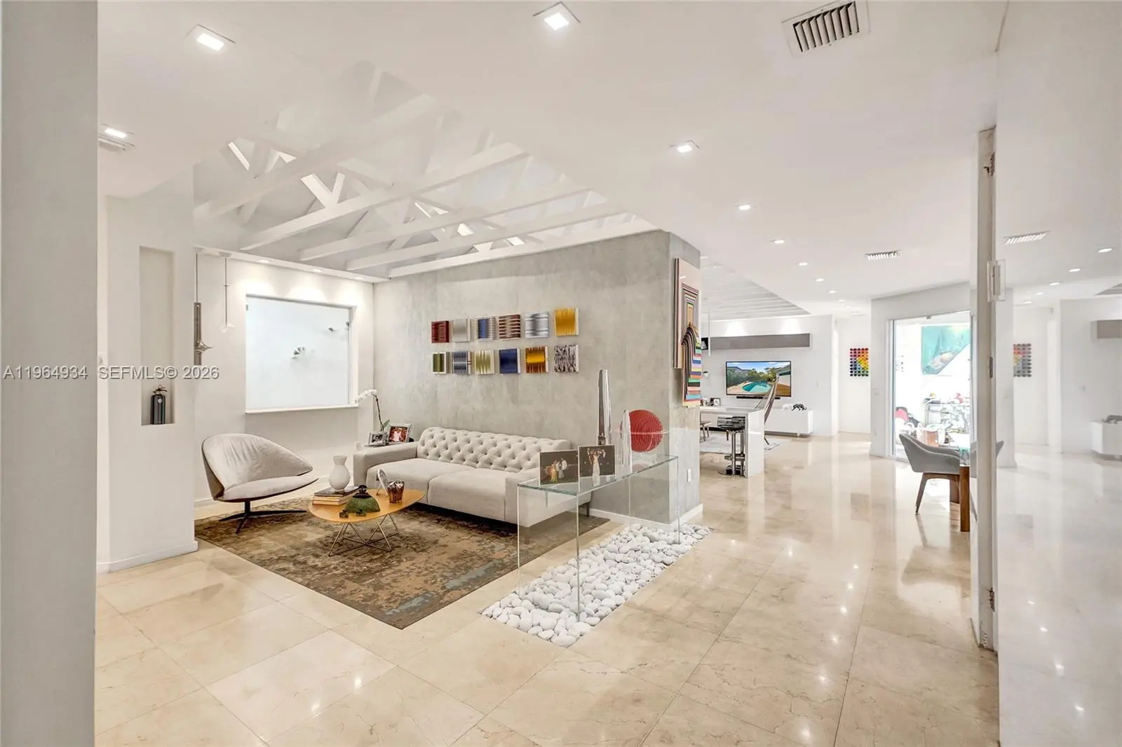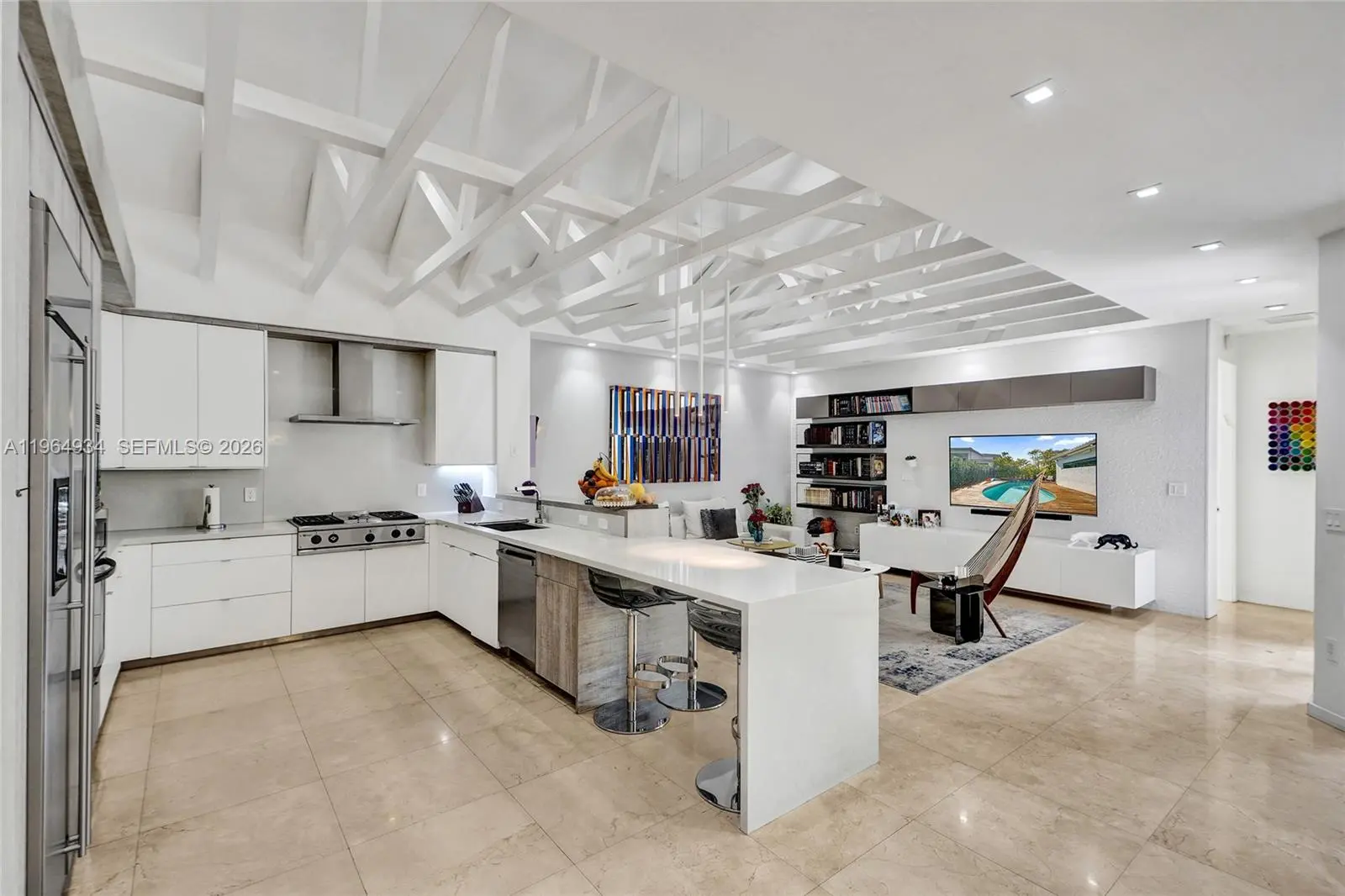 Welcome to one of the most architecturally striking homes in Presidential Estates. Featuring soaring ceilings with exposed beams, expansive open living spaces, and a fully updated kitchen with high-end stainless steel appliances and an oversized island designed for entertaining. The indoor-outdoor flow leads to a private backyard with a wood deck, pool, and jacuzzi, creating the perfect South Florida lifestyle setting. Designer bathrooms, custom finishes,s and abundant natural light throughout. Move-in ready and arguably the best modern option currently available in Presidential. Without question, one of the best modern options in the neighborhood.